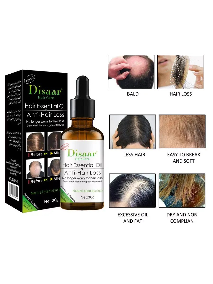 Масло/сыворотка против выпадения волос DISAAR, Масло/сыворотка для роста волос против выпадения от облысения 30 мл. восстанавливает питание клеток необходимыми активными элементами;улучшает кровоснабжение кожи головы и питание волосяных луковиц; стимулирует восстановление клеток волоса и выработку кератина;пробуждает спящие фолликулы;оздоравливает волосяные луковицы,активизирует, ускоряет рост волос и прекращает выпадение. Масло/сыворотка обогащена множеством натуральных питательных веществ, которые проникают внутрь корней волосяных фолликулов, ускоряя поглощение питательных веществ. Это приводит к улучшению кровообращения и к укреплению волос. Масло/сыворотка содержит био-активные микроэлементы, которые улучшают состояние волос и кожи головы. Подробная инструкция к сыворотке для роста волос на русском языке имеется. Сыворотка особенно эффективна в сочетании с шампунем DISAAR ANTI HAIR LOSS.