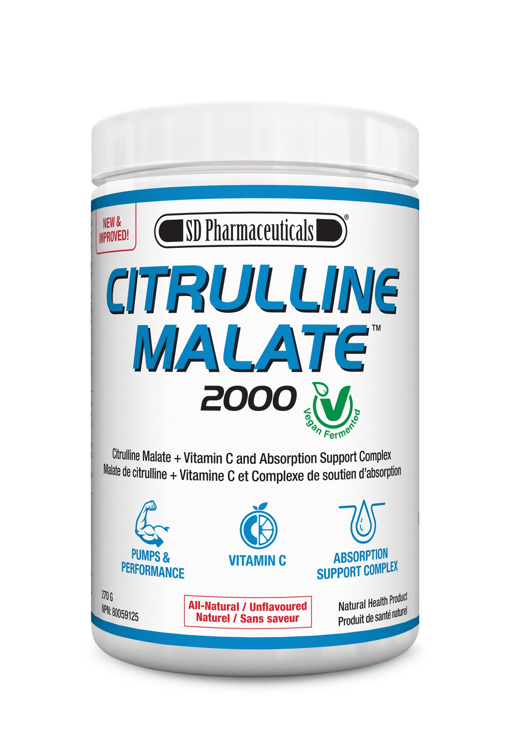 SD Pharmaceuticals Citrulline Malate 2000 (270 g) | Pure Vegan Fermented L-Citrulline Malate