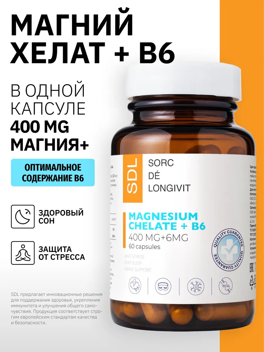 | Полное наименование товара | Магний B6 хелат бисглицинат SDL / СДЛ — витамины для сна и спокойствия, нервной системы и сердца, от стресса и судорог, для женщин, мужчин, спортсменов, при бессоннице и усталости, 60 капсул |