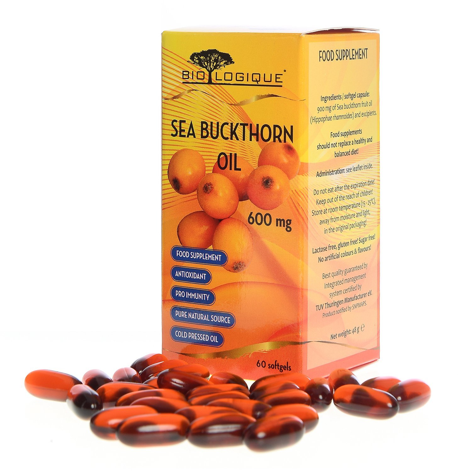Sea buckthorn oil 600mg, 60 capsules, cold pressed.Made in EU. Ingredients ingredients One capsule contains: (600mg) sea buckthorn fruit oil and the cover itself (gelatin, glycerin and cleaned water).