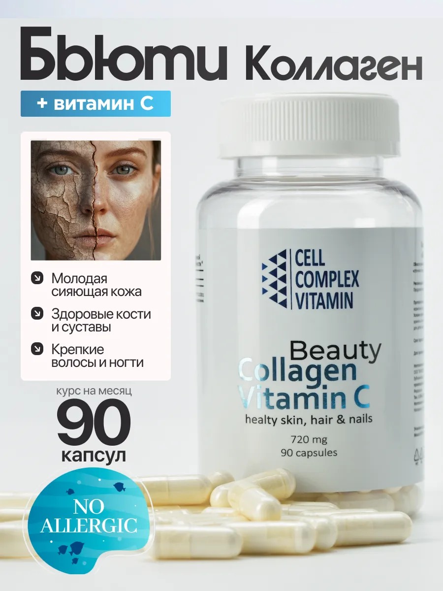 Рекомендации по применению: принимайть по 1–2 капсулы BEAUTY COLLAGEN в день во время еды. Рекомендуется курсом не менее 1 месяца для видимого эффекта. Откройте секрет молодой и сияющей кожи с BEAUTY COLLAGEN — уникальным комплексом морского коллагена и витаминов, разработанного специально для женщин. Каждая капсула дарит вашей коже необходимую поддержку для молодости и здоровья, восстановления барьерного и защитного функция кожи.