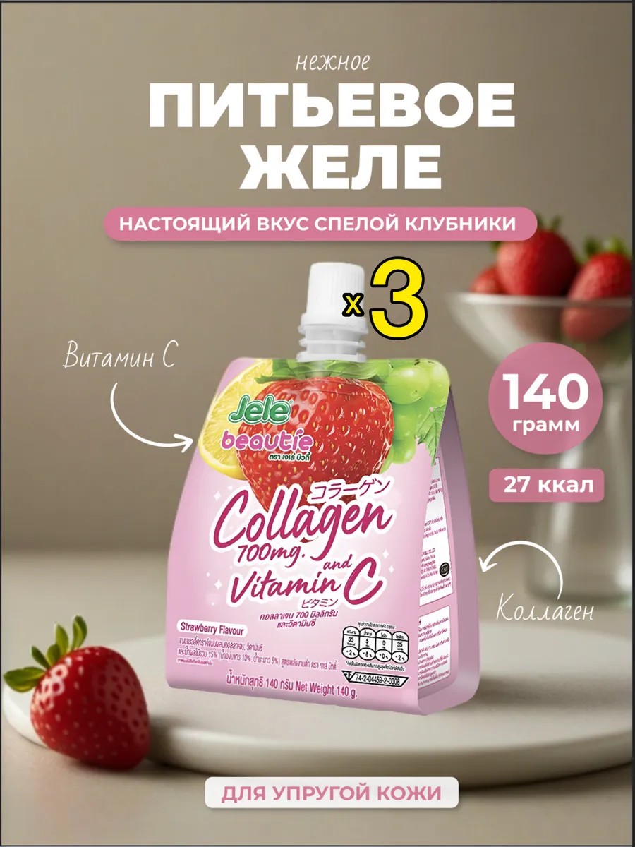 Желе питьевое Jele Beautie Клубника, 3 шт по 140 г