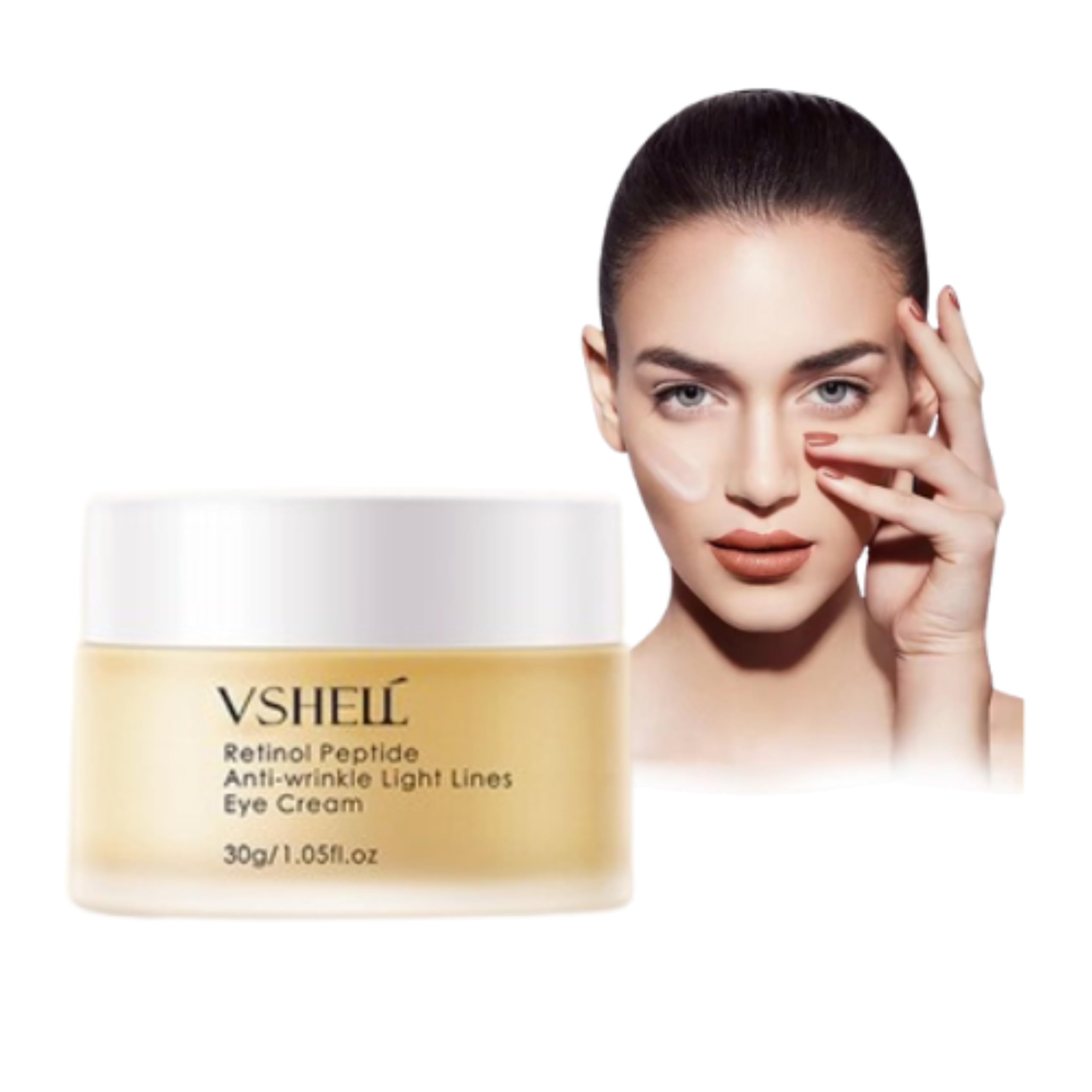 : VSHELL retinol peptide anti wrinkle light lines eye cream: RETINOL ANTI-WRINKLE FIRMING EYE CREAM, FADE FINE LINES AND TIGHT What Makes The Firming Eye Cream Be The GREAT CHOICE? - Reduces The Appearance Of Fine Lines Wrinkles, Retinol Eye Cream penetrates deep into the delicate skin surface around your eyes. - Reduces Puffiness Dark Circles, and it's safe enough to use every day and night with virtually no irritation. - Plumps Up Smooths Skin, apply every day to the skin around your eyes for 24-hour hydration, Retinol Eye cream visibly firms, evens skin tone, and reduces the appearance of fine lines, wrinkles and dark circles. It has a light, silky feel and absorbs quickly. - Repairing Moisturizing at The Same Time. Retinol Eye cream visibly firms, evens skin tone, and reduces the appearance of fine lines, wrinkles and dark circles. It has a light, silky feel and absorbs quickly, going deep into your skin's surface so you wake up every morning to younger-looking, radiant eyes. How to use: 1. Take the rice grain size eye cream, and gently tap on the ring finger to around the eyes. 2. Smooth the skin texture and gently spread in circular motions. 3. Massage under the eyes by gently lifting upwards to help absorption.Customer Satisfaction Guarantee - We are committed to your satisfaction, backing every product we offer . Our dedicated customer service member is here to assist you with any inquiries or needs you may have, ensuring your journey with our under eye cream for puffiness and bags is nothing short of exceptional. This Perfect Anti-Winkle Eye Cream Cream for daily eye skin care routine experience refreshing, anti-aging benefits with just a pearl-sized application in the morning and evening. We're all about providing truth and clarity in natural, effective eye skincare. Replenish skin with eye moisturizer, anti-wrinkle eye skin care to provide your eye skin essential moisture to keep skin healthy. Restore Skin Around Your Eye Illuminate your under-eye area with nature remover fine line, Our eye cream has a rich, yet lightweight feel and it absorbs quickly into your skin to moisturize and nourish all night long. Experience the transformation and embrace the beauty of your eye skin. Simply use around the eye area before bedtime let it work its magic overnight – safe to use every night without the tradeoffs. RETINOL PEPTIDE ANTI WRINKLE EYE CREAM VSHELL eye cream smooths, reduces puffiness, and diminishes dark circles. Enjoy softer, smoother, hydrated skin around the eyes with reduced wrinkles, absorbs quickly without feeling heavy.