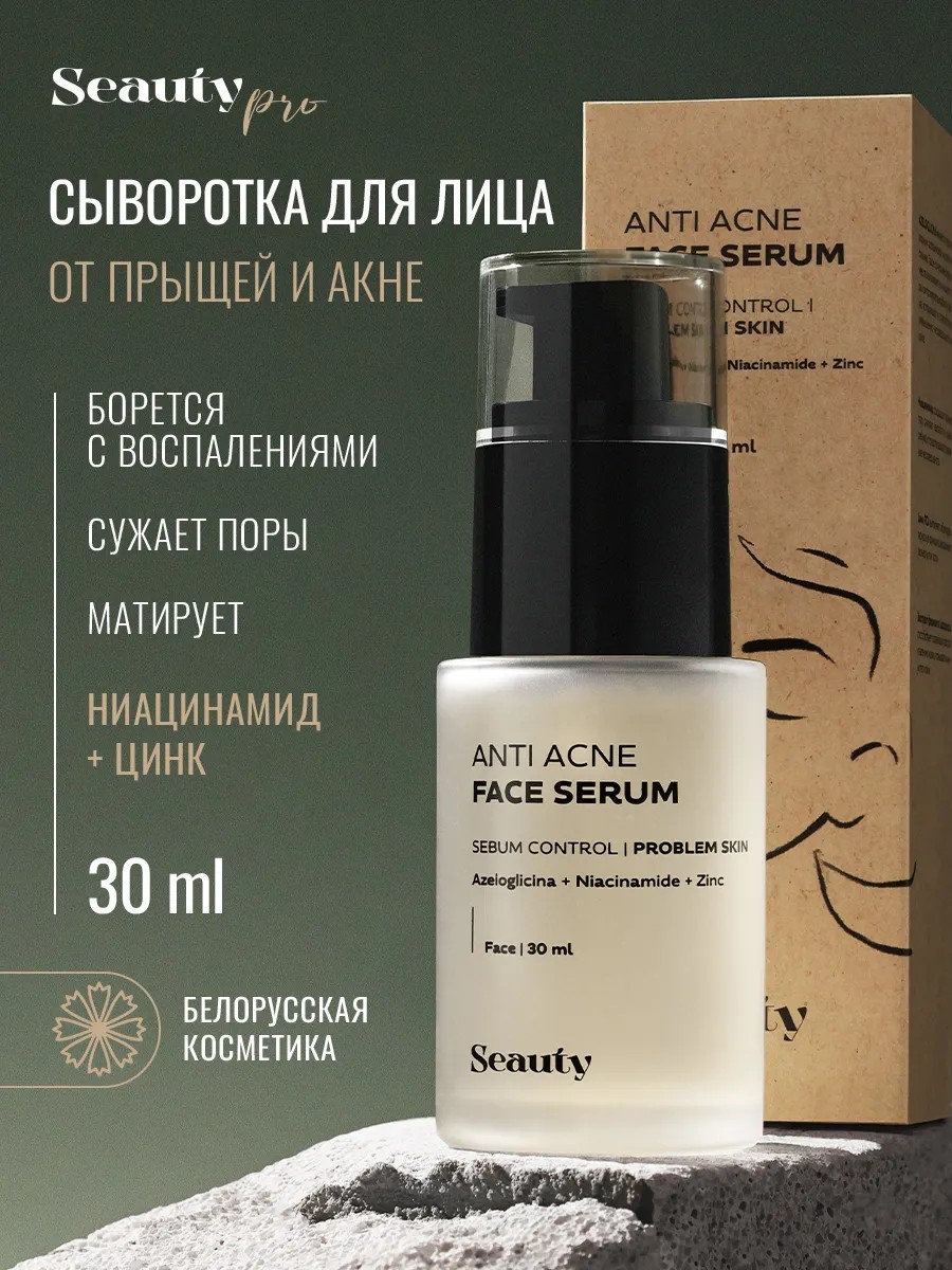 This niacinamide and zinc facial serum is the ideal choice for those seeking an anti-acne and anti-post-acne treatment for facial massage. This acne serum for teenagers, both girls and adults, will help you achieve smooth, clear skin. Seauty is a professional skincare line for women, inspired by Korean cosmetics. It meets Korean facial serum quality standards. This imperfection-fighting cosmetic for adults and teenagers is the perfect addition to a facial care set for blackheads on the nose or a gift set for women for makeup removal. Seauty is a Belarusian brand of professional women's cosmetics at affordable prices. Beautiful and healthy skin all year round with women's cosmetic sets from Seauty.