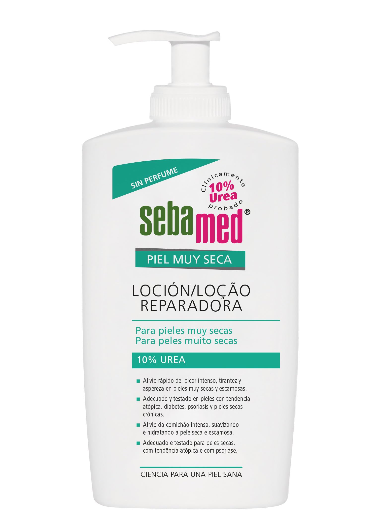 Sebamed Repair Lotion with 10 Urea and no fragrance has been developed for the special care of people with extremely dry skin. It relieves the feeling of tightness, roughness, and itching common in very dry skin and helps restore the skin's natural moisture balance. Concentrated urea, as a component of the skin's natural moisturizing factor, immediately relieves the feeling of tightness and enhances the natural exfoliation of extremely dry skin. A hydrolipidic complex of natural sweet almond oil and polyol nourishes the skin and helps protect against dehydration. INGREDIENTS Aqua, Hexyldecanol, Hexyldecyl Laurate, Glyceryl Stearate, Glycerin, Panthenol, Petrolatum, Simmondsia chinensis oil, Butyrospermum parkii butter, Ceteareth-20, Ceteareth-12, Cetearyl Alcohol, Cetyl Palmitate, Sodium Carbomer, Sodium Citrate, Parfum, Phenoxyx. ethanol, benzyl alcohol.Contains a hydrolipidic complex that nourishes the skin and protects it against dehydration. Contains panthenol, which reduces irritation and intensifies the moisturizing effect. Contains lactic acid, which enhances the skin's natural exfoliation and helps relieve tightness. Contains 10 urea, which quickly relieves itching and helps soften very dry skin. Clinically and dermatologically tested.Sebamed Lotion réparatrice, contient de l'urée, nourrit et hydrate la peau, réduit les irritations, 400 mlDESCRIPTION DU PRODUIT DESCRIPTION DU PRODUIT La lotion réparatrice de Sebamed avec 10 d'urée et sans parfum a été développée pour le soin spécial des personnes à la peau extrêmement sèche. Soulage les sensations de tiraillement, la rugosité et les démangeaisons courantes sur les peaux très sèches et aide à rétablir l'équilibre naturel de l'humidité de la peau. L'urée concentrée et en tant que composant du facteur hydratant naturel de la peau, soulage immédiatement la sensation de tiraillement et renforce la desquamation naturelle des peaux extrêmement sèches. Un complexe hydrolipidique d'huile naturelle d'amande douce et de polyol nourrit la peau et favorise la protection contre la déshydratation. INGRÉDIENTS Aqua, Hexyldécanol, Hexyldecyl Laurate, Glyceryl Stearate, Glycerin, Panthenol, Petrolatum, Simmondsia chinensis oil, Butyrospermum parkii butter, Ceteareth-20, Ceteareth-12, Cetearyl Alcohol, Cetyl Palmitate, Sodium Carbomer, Sodium Citrate, Parfum, Phenoxyx. éthanol, alcool benzyl.Contient un complexe hydrolipidique qui nourrit la peau et la protège contre la déshydratation. Contient du panthénol, qui réduit les irritations et intensifie l'effet hydratant. Contient de l'acide lactique, qui renforce la desquamation naturelle de la peau et aide à soulager la sensation de tiraillement. Contient 10 d'urée, qui soulage rapidement les démangeaisons et aide à adoucir la peau très sèche. Testé cliniquement et dermatologiquement.