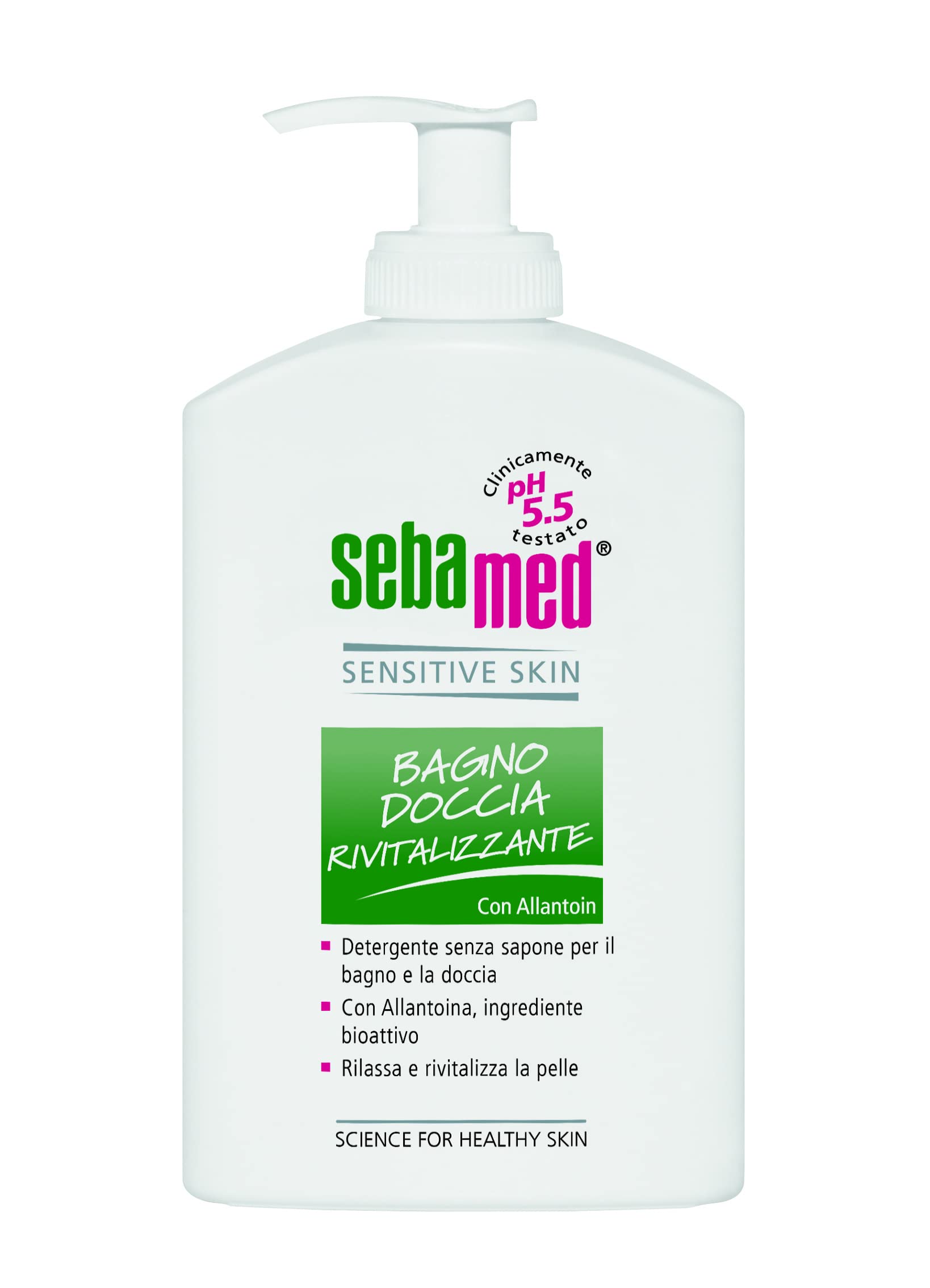 Revitalizing Shower Gel with pH 5.5. This soap-free shower gel has a skin-friendly pH of 5.5, which supports the skin's natural acid-peel barrier function. It combines gentle cleansing with a relaxing and revitalizing experience. Suitable for sensitive and intolerant skin. Formulated with amino acids, lactic acid, and allantoin for supple, soft, and silky skin. Dermatologically and clinically tested. Benefits: soap-free and alkaline-free gentle yet deep cleansing with amino acids, lactic acid, and allantoin for supple, soft, and silky skin for sensitive and intolerant skin. Directions: Apply to damp skin, massage gently, and rinse thoroughly. INGREDIENTS Aqua, Sodium C14-16 Olefin Sulfonate, Disodium Laureth Sulfosuccinate, Sodium Laureth Sulfate, Laureth-2, Parfum, Hydrolyzed Pea Protein, Allantoin, Niacinamide, Glycine, Alanine, Lysine, Leucine, Magnesium Aspartate, Lactic Acid, Sodium Chloride, Profuge, Pylene Glycol, Butylene Glycol, PEG-55 Propylene Glycol Oleate, Benzyl Alcohol, Phenoxyethanol, Sodium Benzoate, CI 42090, CI 47005.Dermatologically and clinically tested. For sensitive and intolerant skin. pH 5.5 supports the skin's natural acid-peel barrier function. Formulated with amino acids, lactic acid, and allantoin for supple, soft, and silky skin. Combines gentle cleansing with a relaxing and revitalizing experience. Helps maintain balanced hydration and protects the skin against external irritants, allergens, and harmful microorganisms.Sebamed Salle de bain douche revitalisante, pour bain et douche, pour peaux sensibles et intolérantes, pH 5.5, 400 ml 400 ml (Confezione da 1)DESCRIPTION DU PRODUIT DESCRIPTION DU PRODUIT Bain douche revitalisant avec pH 5,5 Bain douche sans savon avec pH physiologique de la peau 5,5, qui favorise la fonction naturelle de barrière du pelage acide de la peau. Il combine un nettoyage doux à un bien-être relaxant et revitalisant. Indiqué pour les peaux sensibles et intolérantes. Formule aux acides aminés, acide lactique et allantoïne pour une peau élastique, douce et soyeuse. Testé dermatologiquement et cliniquement. Avantages : sans savon et agents alcalins nettoyage doux et profond avec acides aminés, acide, lactique et allantoïne pour une peau élastique, douce et soyeuse pour peaux sensibles et intolérantes. Mode d'emploi : appliquer sur peau humide, masser doucement et rincer à fond INGRÉDIENTS Aqua, Sodium C14-16 Olefin Sulfonate, Disodium Laureth Sulfosuccinate, Sodium Laureth Sulfate, Laureth-2, Parfum, Hydrolyzed Pea Protein, Allantoin, Niacinamide, Glycine, Alanine, Lysine, Leucine, Magnesium Aspartate, Lactic Acid, Sodium Chloride, Prodium, Profuge, Profuge, Prodium, Pylene Glylye Col, Butylene Glycol, PEG-55 Propylene Glycol Oleate, Benzyl Alcohol, Phenoxyethanol, Sodium benzoate, CI 42090, CI 47005.Testé dermatologiquement et cliniquement. Pour peaux sensibles et intolérantes. Le pH 5,5 favorise la fonction naturelle de barrière du pelage acide de la peau. Formule aux acides aminés, acide, lactique et allantoïne pour une peau élastique, douce et soyeuse. Combine un nettoyage doux à un bien-être relaxant et revitalisant. Contribue à maintenir une hydratation équilibrée, à protéger la peau contre les irritants externes, allergènes et micro-organismes nocifs.