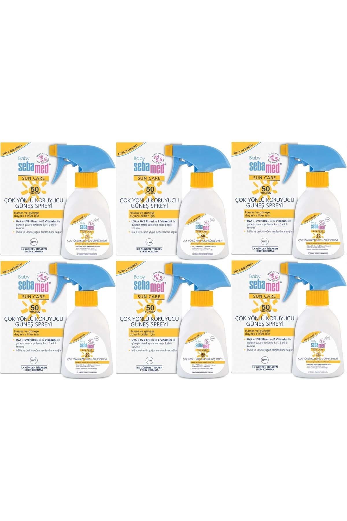 Sebamed Sun Care Baby Sun Lotion Cream Spray 50 Factor 200ML (For Sensitive Skin) (Set of 6)Features:Triple Protection for Sensitive Baby SkinIt filters the harmful rays of the sun and protects the skin thanks to its highly effective 98 UVA filters combined with micro pigments and 10-20-28-30-45-58 UVA filters according to the Colipe method.Protects against pigmentation spots and aging effects caused by the sun..Natural hydro-fructol formula maintains skin elasticity by providing intense moisturizing.Thanks to its Ph5.5 feature, it preserves the protective soft cover of the skin.It is easy to apply and not sticky. It does not leave a white residue.It is suitable for use in the city, by the sea and in sports.It does not contain oil, alcohol and colorants.It does not contain paraffin PEG components, PABA and Acrylamide.Dermatologically tested.It is water and sand resistant.Sun Spray for sensitive skin50 Factor 200 mlPlace of Production: GermanyIngredients: Aqua, Octocrylene, C12-15 Alkyl Benzoate, Titanium Dioxide (Nano), Glycerin, Butyl Methoxydibenzoylmethane, Lauryl Glucoside, Polyglyceryl-2 Dipolyhydroxystearate, Dibutyl Adipate, VP Eicosene Copolymer, Diethylamino Hydroxybenzoyl Hexyl Benzoate, Microcrystalline Cellulose, Dimethicone, Panthenol, Tocopheryl Acetate, Cetearyl Isononanoate, Inulin, Lecithin, Bisabolol, Sodium Cetearyl Sulfate, Hydroxide, Parfum, Benzyl Alcohol, Dehydroacetic Acid, Ethylhexylglycerin, Phenoxyethanol, Sorbic Acid.