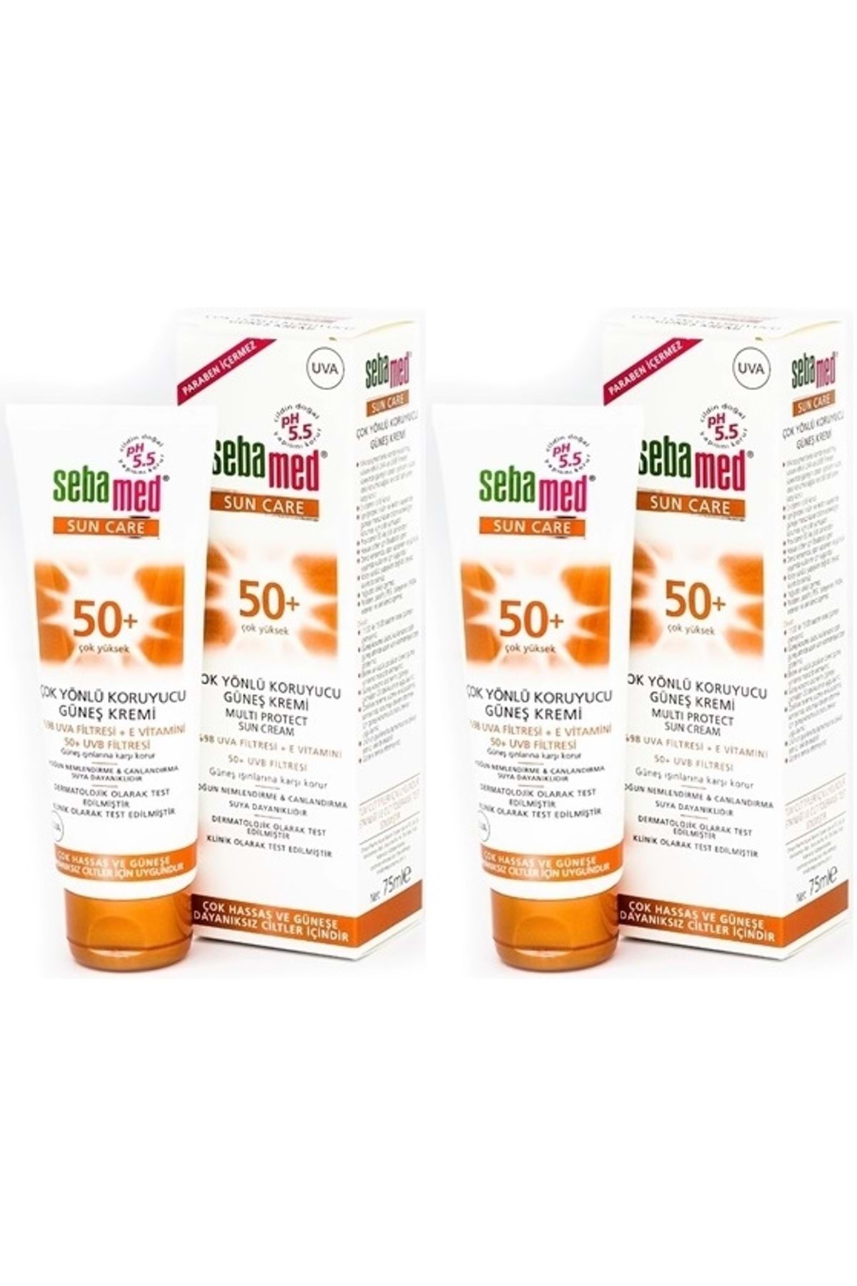Sebamed Sun Care Çok Yönlü Koruyucu Günes Kremi 75ML SPF 50 Faktör (2 Li Set)Özellikleri:Günes isinlarina bagli cilt hasari ve tahrisi önleyen mikro pigmentlerle kombine edilmis etkin UVA UVB filtre sistemiyle güvenilir UVA UVB koruma saglar.5.5 pH degerindedir.Cildi yaslanma etkilerine karsi korur.Günese maruz kalan cildi yumusatir, pürüzsüzlestirir ve cildin esnekligini korur.Günesin neden oldugu pigmentasyon lekelerine ve erken yaslanma belirtilerine karsi koruma saglar.6saate kadar su ve tere karsi dayanikliligini sürdürür, kuma dayaniklidir.Kolay uygulanir, yag içermez, beyaz kalinti birakmaz.Dogal Hydro Fruktol formülü, E vitamini, d-pantenol içerir.Günes yanigina karsi cildi korur.Günesin olusturdugu hasar ve yaslanmaya karsi cildi korur.Çok hassas ciltler ve günese dayaniksiz ciltler ile çocuklar için uygundur.Kumsalda, spor yaparken ve kentte kullanima uygundur.Dermatolojik ve klinik olarak test edilmistir.Paraben içermez.Sebamed Çok Yönlü Koruyucu Günes Losyonu 50 Faktör 150 mlBilesenleri: Aqua, Octocrylene, Dibutyl Adipate, Titanium Dioxide (Nano), C12-15 Alkyl Benzoate, Butyl Methoxydibenzoylmethane, Glycerin, DiethylaminoHydroxybenzoyl Hexyl Benzoate, Dimethicone, VP Eicosene Copolymer, Microcrystalline Cellulose, Panthenol, Tocopheryl Acetate, Lauryl Glucoside, Polyglyceryl-2 Dipolyhydroxystearate, Diethylhexyl Butamido Triazone, Inulin, Lecithin, Bisabolol, Sodium Cetearyl Sulfate, Silica, Bis-Ethylhexyloxyphenol Methoxyphenyl Triazine, Cellulose Gum, Xanthan Gum, Disodium EDTA, Citric Acid, Sodium Hydroxide, Parfum, Benzyl Alcohol, Dehydroacetic Acid, Ethylhexylglycerin, Phenoxyethanol, Sorbic Acid.