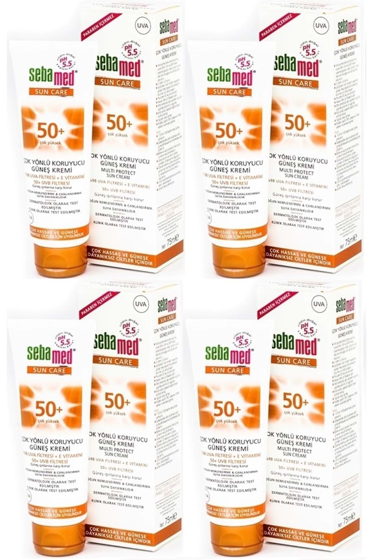 Sebamed Sun Care Versatile Protective Sun Cream 75ML SPF 50 Factor (Set of 4)Features:It provides reliable UVA UVB protection with its effective UVA UVB filter system combined with micro pigments that prevent skin damage and irritation due to sun rays.It has a pH value of 5.5.Protects the skin against the effects of aging.It softens and smoothes the skin exposed to the sun and preserves the skin's elasticity.Provides protection against pigmentation spots caused by the sun and signs of premature aging.It remains resistant to water and sweat for up to 6 hours and is resistant to sand.It is easy to apply, does not contain oil and does not leave a white residue.Natural Hydro Fructol formula contains vitamin E, d-panthenol.Protects the skin against sunburn.It protects the skin against sun damage and aging.Suitable for children with very sensitive skin and skin that is not resistant to the sun.It is suitable for use on the beach, while doing sports and in the city.Dermatologically and clinically tested.It does not contain paraben.Sebamed Versatile Protective Sun Lotion 50 Factor 150 mlComponents: Aqua, Octocrylene, Dibutyl Adipate, Titanium Dioxide (Nano), C12-15 Alkyl Benzoate, Butyl Methoxydibenzoylmethane, Glycerin, DiethylaminoHydroxybenzoyl Hexyl Benzoate, Dimethicone, VP Eicosene Copolymer, Microcrystalline Cellulose, Panthenol, Tocopheryl Acetate, Lauryl Glucoside, Polyglyceryl-2 Dipolyhydroxystearate, Diethylhexyl Butamido Triazone, Inulin, Lecithin, Bisabolol, Sodium Cetearyl Sulfate, Silica, Bis-Ethylhexyloxyphenol Methoxyphenyl Triazine, Cellulose Gum, Xanthan Gum, Disodium EDTA, Citric Acid, Sodium Hydroxide, Parfum, Benzyl Alcohol, Dehydroacetic Acid, Ethylhexylglycerin, Phenoxyethanol, Sorbic Acid.