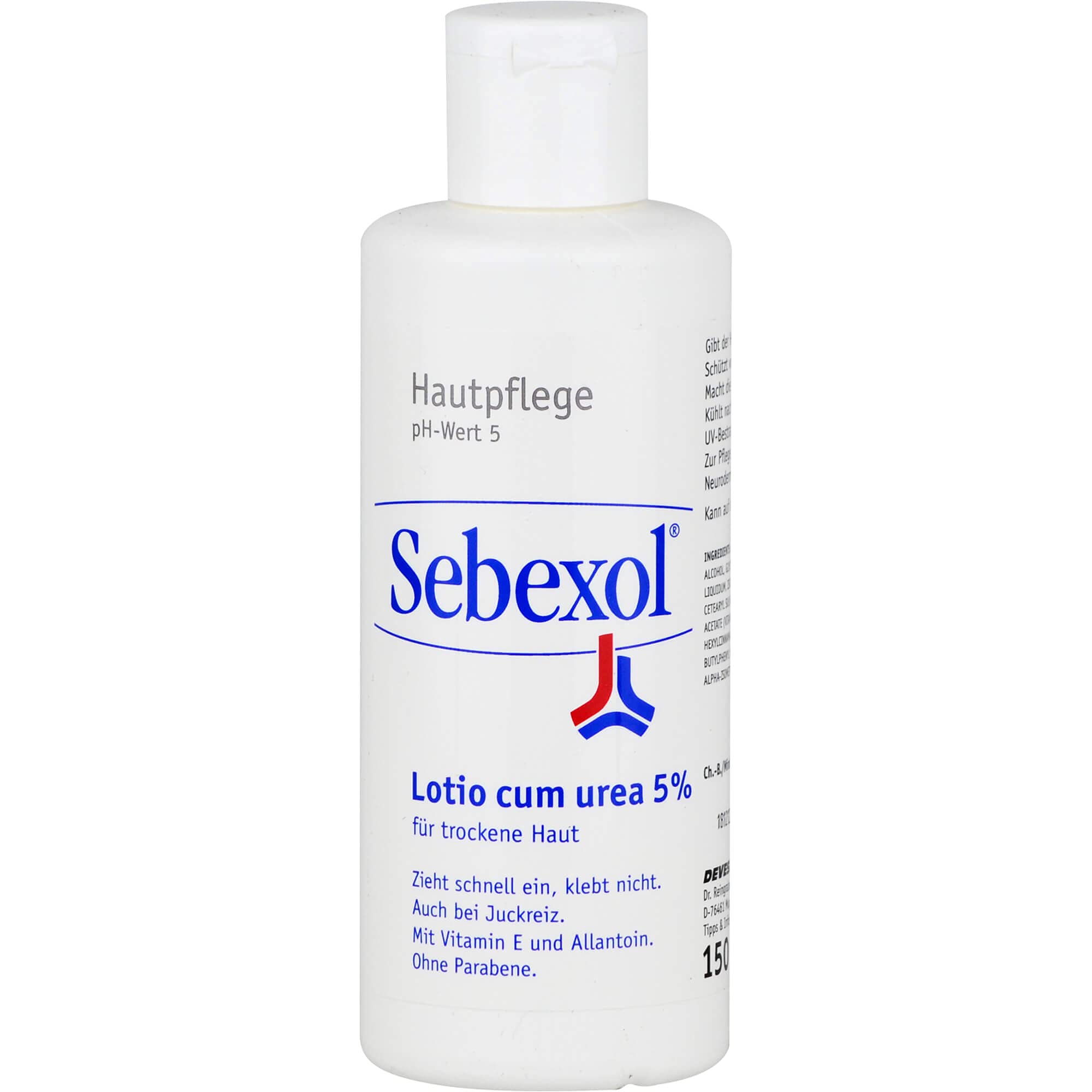 Personal lotion with 5% urea for maintaining dry skin. Product properties: Sebexol Lotio Cum Urea 5 % Sebexol Lotio Cum Urea 5 % is an O/W emulsion.It contains important moisture substances such as glycerol, urea and acidum lacticum. It gives the skin more moisture and less lipid and thus shooks out quickly. Stilling the itching. Hydrate. If it is quick, does not stick. Hohe acceptance in the patient. With vitamin E and allantoin.ohne parabe.sebexol Lotio cum urea 5 % does not hinder the skin breathing, since there is no occlusive effect.There is no heat.It has a struggling effect after sunbathing and UV radiation. Sebexol Lotio Cum Urea 5 % makes the skin pleasantly soft and delicate, improves the elasticity and stabilizes the naturally insulation jacket of the skin. Application areas: To maintain the entire body for dry skin and in itching. Massage slightly into the skin.Sparingly can be used because very productive. Note: Can burn through the content of urea when applying open skin areas. Ingredients: Aqua, sodium lactate, urea, cetearyl alcohol, glycerin, isopropyl mystate, paraffinum liquidum, isopropyl lanolate, allantoin, sodium cetearyl sulfate, pca, potassium sorbate , Benzyl salicylate, citronellol, Lime, linalool, alpha-isomethyl ionone, perfume. Source: sebexol.de Status: 12/2021 Instructions Solution to apply to the skin LEGAL NOTICE You ask your doctor or pharmacist about risks and side effects. More free -selling.150 ml emulsion.PZN-07436485. K?rperlotion mit 5% Urea zur Pflege trockener Haut. Produkteigenschaften: Sebexol Lotio cum urea 5 % Sebexol Lotio cum urea 5 % ist eine O/W-Emulsion. Sie enth?lt wichtige Feuchthaltesubstanzen wie Glycerol, Urea und Acidum lacticum. Sie gibt der Haut mehr Feuchtigkeit und weniger Lipide und sch?tzt so vor schnellem Austrocknen. Stillt den Juckreiz.Wirkt hydratisierend.Zieht schnell ein, klebt nicht.Hohe Akzeptanz beim Patienten.Mit Vitamin E und Allantoin.Ohne Parabene.Sebexol Lotio cum urea 5 % behindert die Hautatmung nicht, da kein Okklusiveffekt vorhanden ist. Es entsteht kein Hitzestau. Sie wirkt k?hlend nach dem Sonnenbad und UV-Bestrahlung. Sebexol Lotio cum urea 5 % macht die Haut angenehm weich und zart, verbessert die Elastizit?t und stabilisiert den nat?rlichen S?ureschutzmantel der Haut. Anwendungsgebiete: Zur Pflege des ganzen K?rpers bei trockener Haut und bei Juckreiz.Auch zur Intensivpflege geschlossener Haut bei Neurodermitis, Psoriasis, trockener Altershaut, schuppenden Ekzemen, ?berm??iger Verhornung und Ichthyosis.Anwendungsweise: Leicht in die Haut einmassieren. Sparsam verwendbar, da sehr ergiebig. Hinweis: Kann durch den Gehalt an Urea beim Auftragen auf offenen Hautpartien brennen. Inhaltsstoffe: Aqua, Sodium Lactate, Urea, Cetearyl Alcohol, Glycerin, Isopropyl Myristate, Paraffinum Liquidum, Isopropyl Lanolate, Allantoin, Sodium Cetearyl Sulfate, PCA, Potassium Sorbate, Tocopheryl Acetate (Vitamin E), Citric Acid, Dimethicone, Hexylcinnamal, Benzyl Salicylate, Citronellol, Limonene, Linalool, Alpha-Isomethyl Ionone, Parfum. Quelle: sebexol.de Stand: 12/2021 GEBRAUCHSANWEISUNG Lösung zum Auftragen auf die Haut RECHTLICHE HINWEISE Zu Risiken und Nebenwirkungen fragen Sie Ihren Arzt oder Apotheker. Mehrfreiverkäuflich. 150 ml Emulsion. PZN-07436485.Sebexol Lotio cum urea 5%, 150 ml