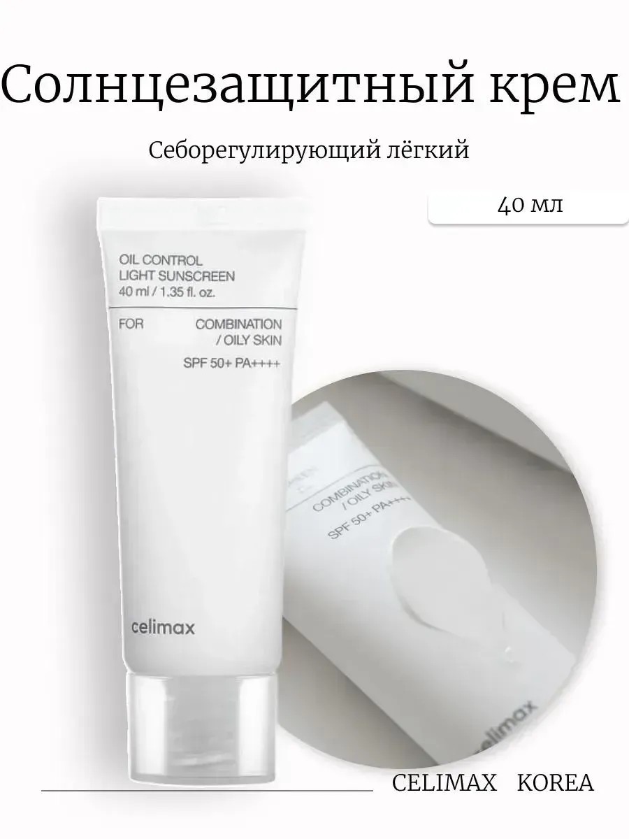 Солнцезащитный крем Celimax для жирной кожи SPF50+ PA++++, 40 мл — легкий, невесомый и надежный уход с матирующим эффектом.