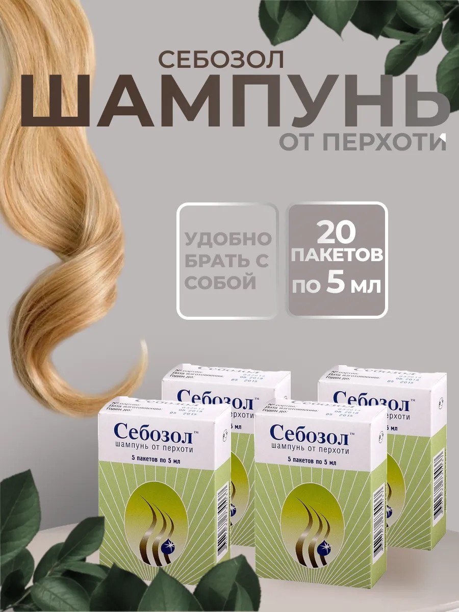 Себозол Шампунь от перхоти 5 пакетов по 5 мл. 4 упаковки