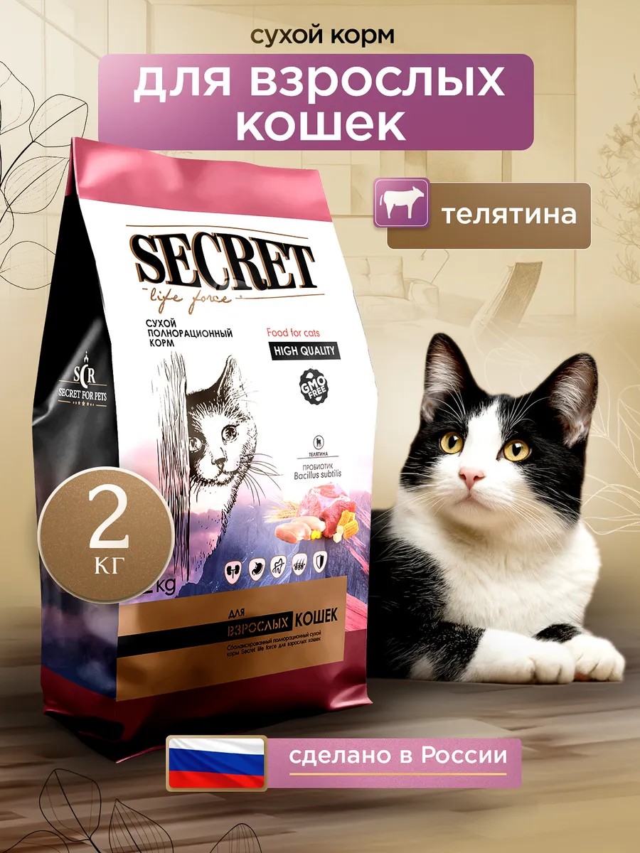 Secret for Pets корм для кошек сухой телятина 2 кг