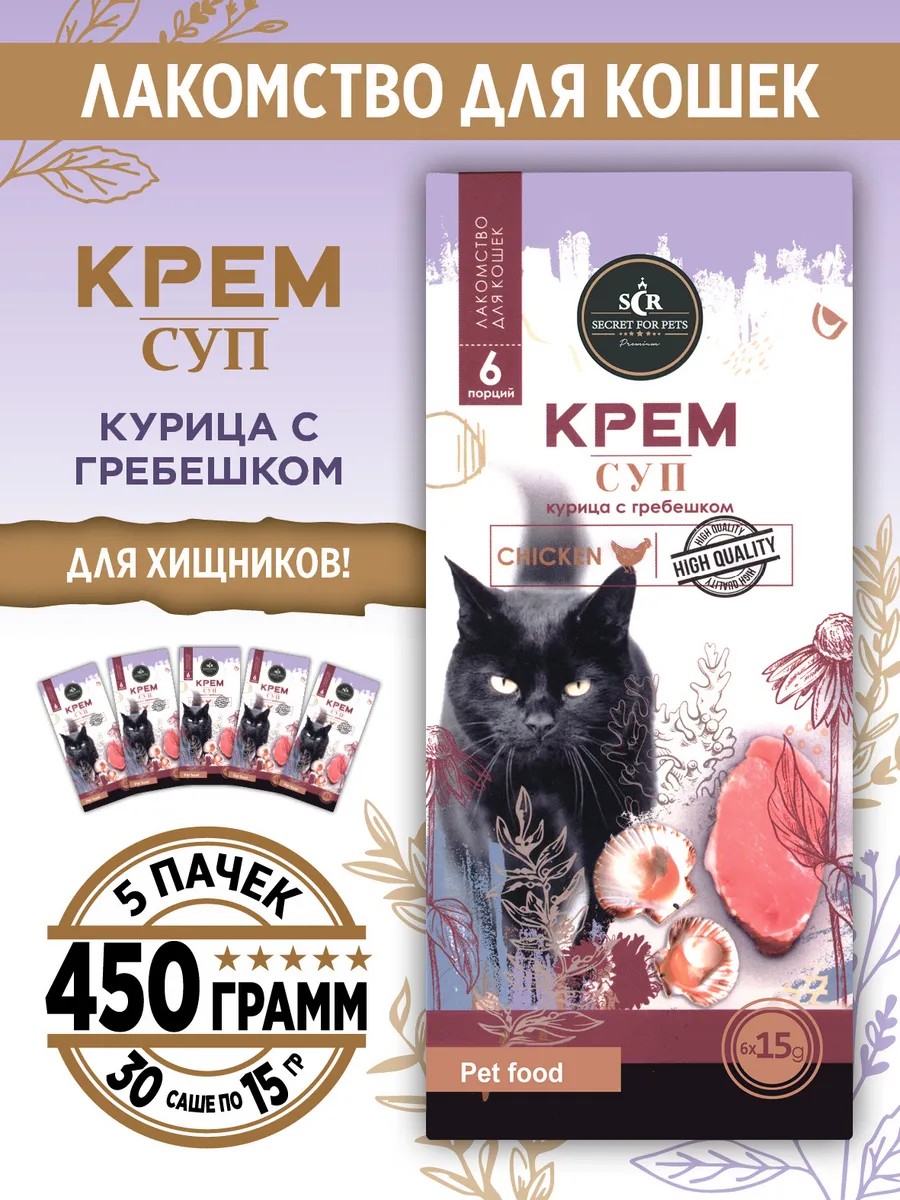 "Secret" суп для кошек "Крем лакомство Курица+Гребешок" - это: