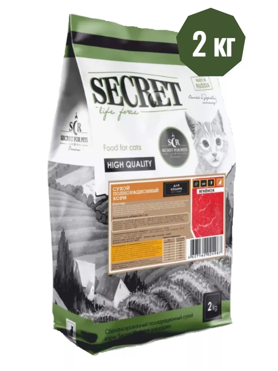 SECRET FOR PETS Сухой корм для кошек Secret Premium ягненок 2 кг
