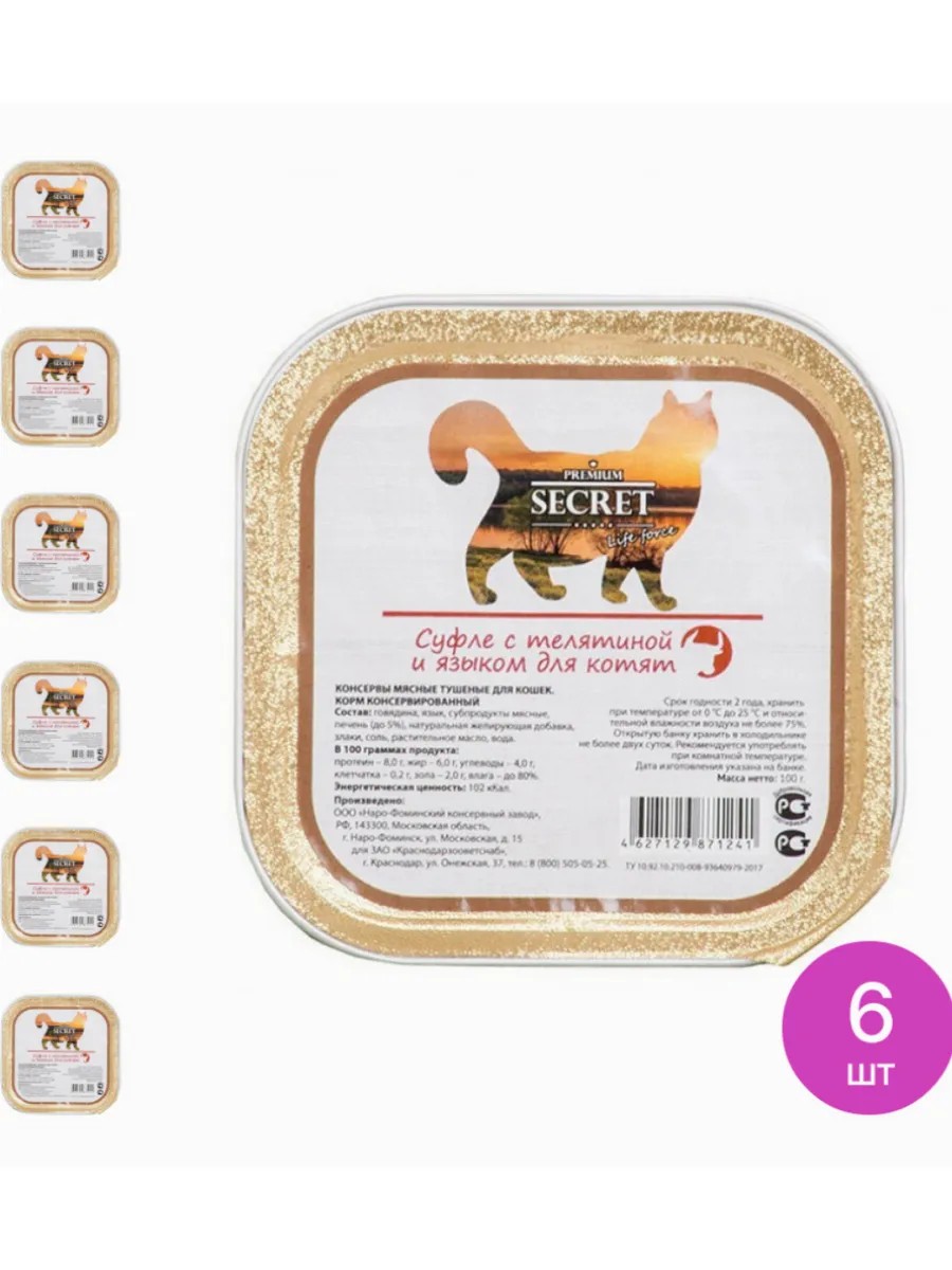 Добавив в рацион корм Secret для котят суфле с телятиной, Вы обеспечите Вашего друга сбалансированным питанием, на это ваш кот ответит благодарностью и подарит своему хозяину только хорошие и позитивные эмоции.