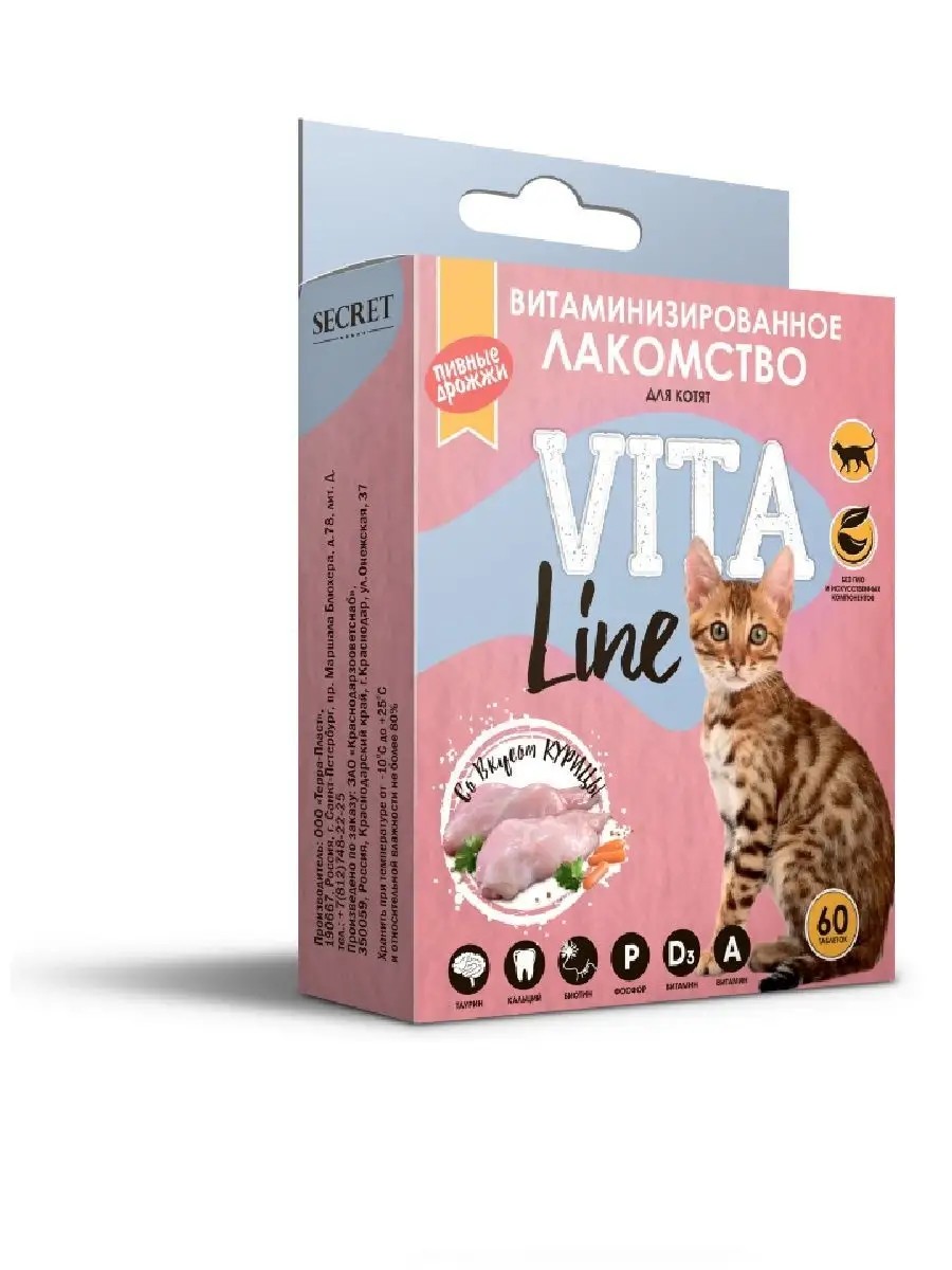 Витамины лакомство для котят с кальцием таурином курица 60 ш
