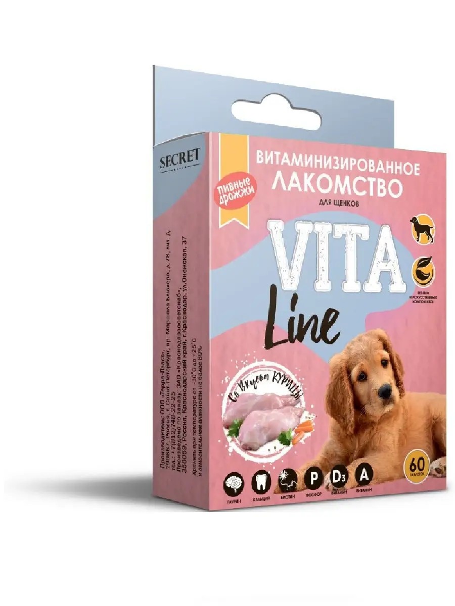 | Количество предметов в упаковке | Витаминизированное лакомство Secret VitaLine Говядина с L-карнитином для собак |