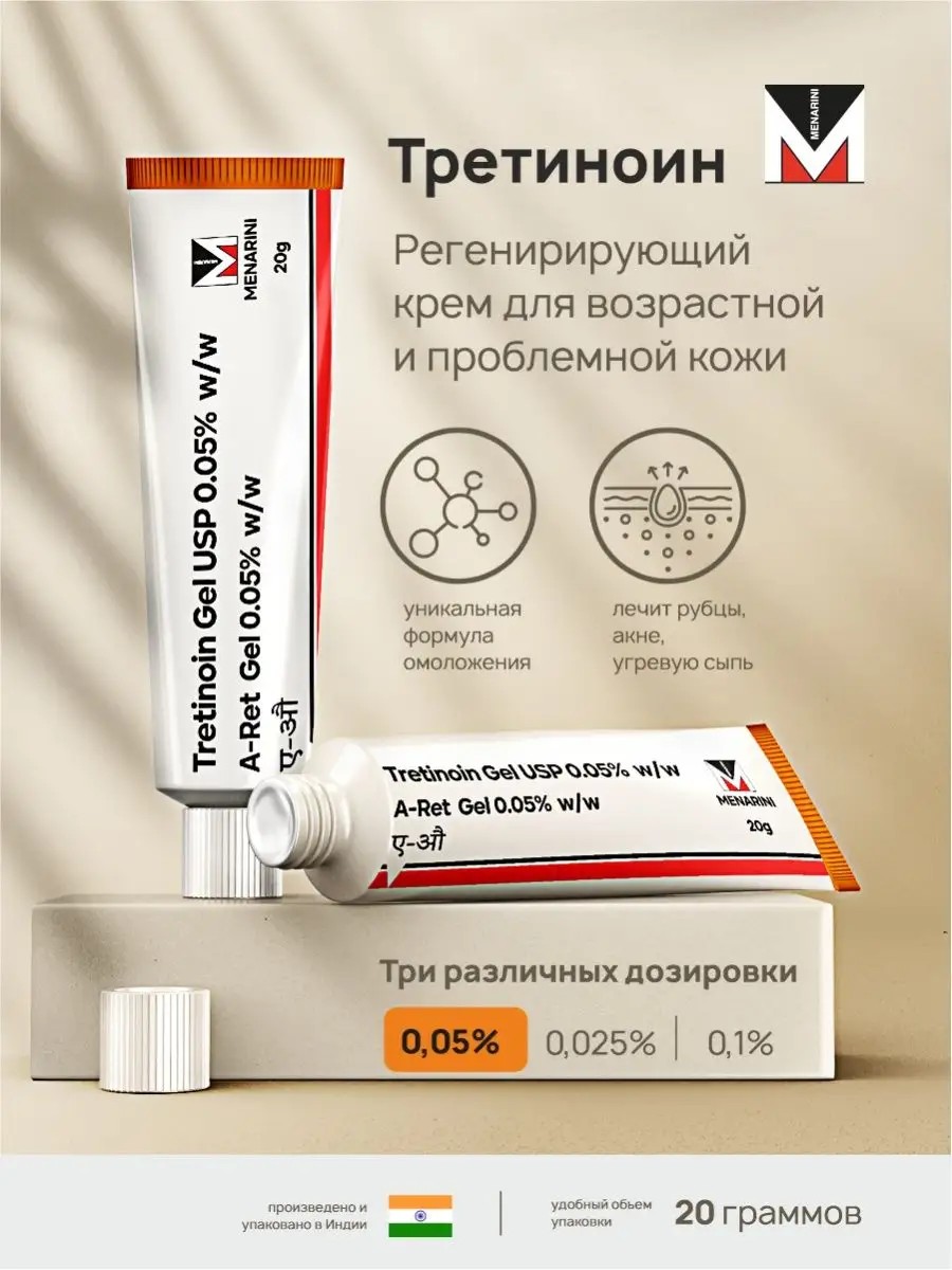 Tretinoin Gel (vitamin A, retinoid) is a unique treatment for problem skin, including acne, pimples, furunculosis, hyperactivity of the sebaceous glands, keratosis of the epithelium of the hair follicles, pigmentation, including acne spots, signs of skin aging, and expression lines. Tretinoin Gel, a professional acne skincare product, has pronounced antibacterial, antiviral, and antiseptic properties, promoting rapid healing of areas affected by acne and furunculosis. Indian cosmetics Tretinoin Gel makes skin firm, smooth, elastic, and soft, prevents thinning and premature aging, and is an excellent alternative to such cosmetics as anti-wrinkle face creams, anti-aging creams, anti-aging treatments, and lifting products. This problematic facial skin cream is paraben-free, safe, and hypoallergenic. Tretinoin anti-pigmentation cream is the best way to combat various skin problems and is an excellent deep cleanser. It's a kind of peeling and microdermabrasion in one. Tretinoin is a highly effective Indian anti-acne cream for healthy and beautiful facial skin, with powerful properties. Treatment should be continued for 4-8 weeks. Tretinoin anti-pigmentation cream is applied in a small amount (the size of a pea) once daily at night to clean, dry skin. During the entire period of retinoid treatment, sunscreen or sunscreen with a high SPF must be applied during the day. During this period, a moisturizer or serum for dry and very dry skin, or a nourishing face cream, will be your salvation. The drug is also approved for adolescents from 12 years of age. Menarini cream should not be used during pregnancy or lactation, if you have increased sensitivity to ultraviolet radiation, or if you have open wounds, burns, inflammation, or abscesses on your skin.