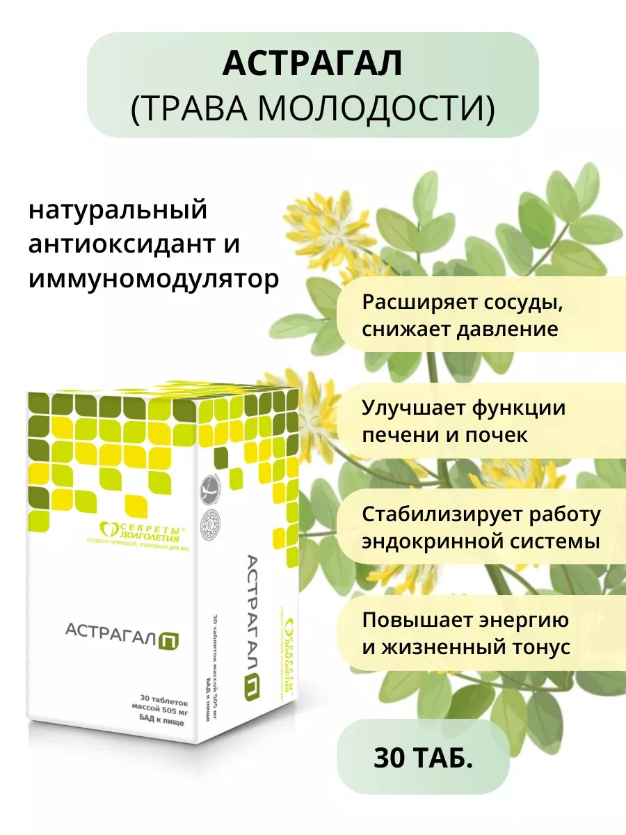 Препарат изготовлен компанией "Парафарм" на основе травы астрагала шерстистоцветкового, которая содержит разнообразные макро- и микроэлементы и является источником органического селена. СЕЛЕН играет важную роль в работе щитовидной железы, репродуктивной, иммунной систем и в предотвращении канцерогенеза. Микроэлемент молодости, активности и продуктивности. Нормализует работу сердечно-сосудистой, репродуктивной, эндокринной, иммунной систем. Стабилизирует функции щитовидной железы. Обладает успокаивающим, гипотензивным, сосудорасширяющим, кардиотоническим и диуретическим свойствами. Астрагал содержит селен в наиболее биодоступной, низкотоксичной и полностью физиологически совместимой с организмом человека форме — аминокислоты L-селеноцистина. Для ПРОИЗВОДСТВА препарата используется трава астрагала, выращенная с применением метода биофортификации L-селеноцистином, что позволяет добиться повышенного содержания селена — до 70 мкг на 100 мг сухой массы растения. В результате 1 таблетка препарата (суточная дозировка) содержит 100 мкг селена, что составляет 143% от рекомендуемого уровня суточного потребления селена. В препарате используются цельные части растений, а не экстракты из них. При производстве концентрата применяется технология КРИООБРАБОТКИ, что позволяет добиться максимальной сохранности всех действующих веществ и лучшего измельчения, а значит – более эффективного усвоения действующих веществ. РЕКОМЕНДУЕТСЯ в качестве биологически активной добавки к пище, источника селена, глицирризиновой кислоты и флавоноидов при хроническом переутомлении, повышенных умственных и физических нагрузках; нарушении работы щитовидной железы, ослаблении половой функции у мужчин и женщин, включая проблемы с зачатием; хронической сердечно-сосудистой недостаточности, гипертонии, атеросклерозе; в качестве общеукрепляющего, иммуномодулирующего, противоотечного и противоопухолевого средства; для укрепления опорно-двигательного аппарата; ослабления климактерических симптомов: слабости, головокружения, депрессии и тревожности; поддержания красоты и здоровья кожи, волос, ногтей. СПОСОБ ПРИМЕНЕНИЯ: по 1 таблетке в день во время еды. Продолжительность приема — 1 месяц. При необходимости повторить курс для получения устойчивого результата.
