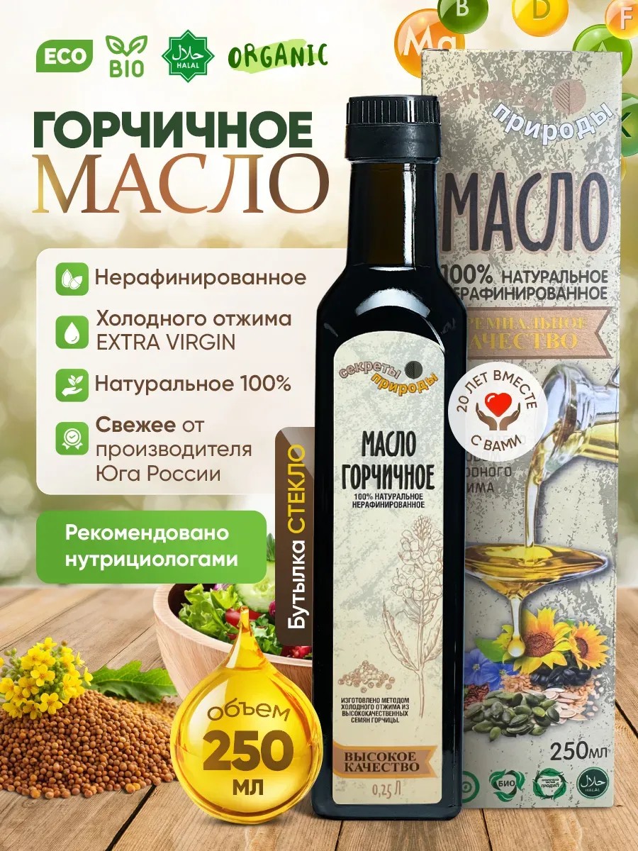 | Комплектация | горчичное масло в стеклянной бутылке 250 мл. |