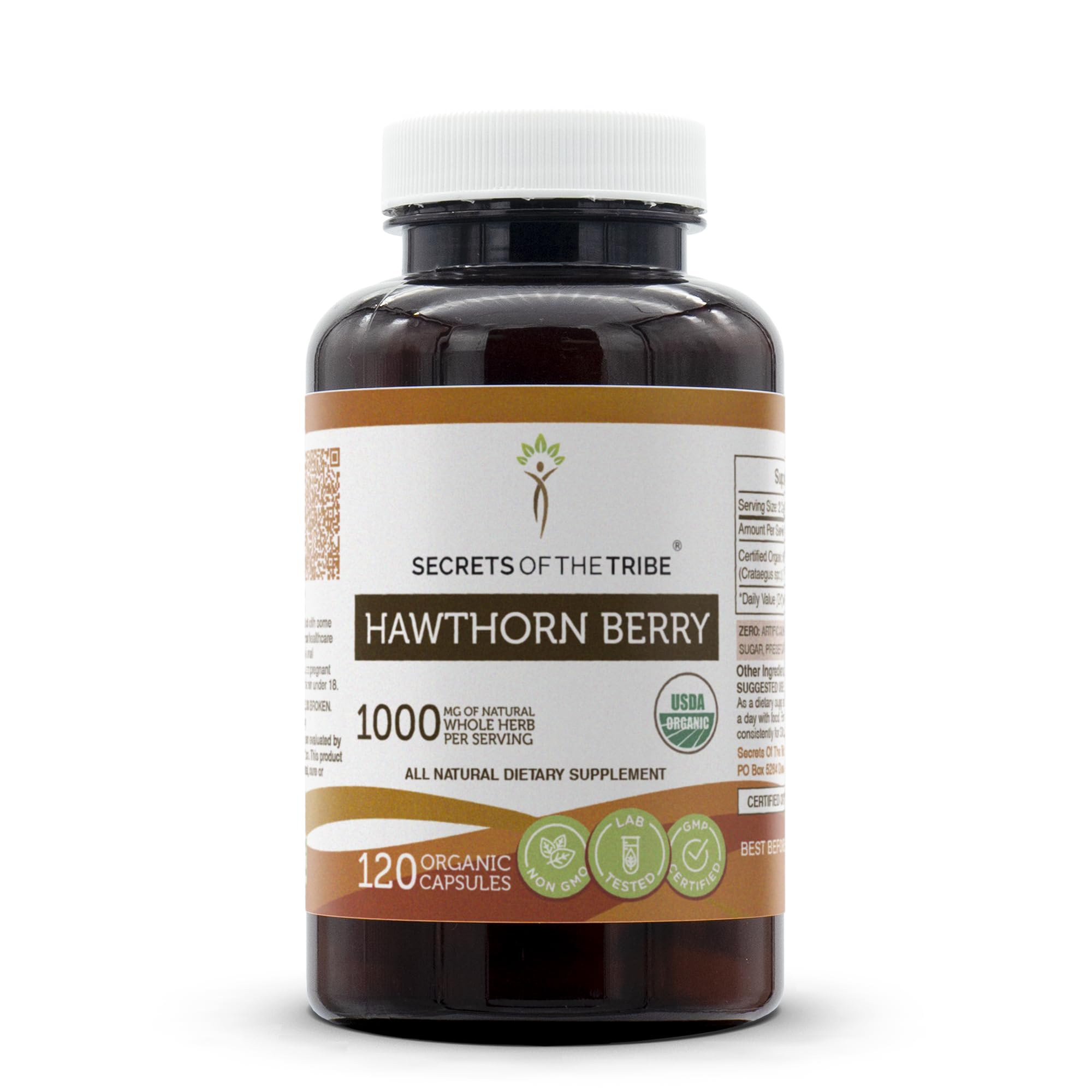 Secrets of the Tribe Hawthorn Berry USDA Organic Capsules | Certified Organic Vegetarian Capsules Herbal Dietary Supplement | Crataegus spp. Dried Berry (120 Count) 120 Count (Pack of 1)