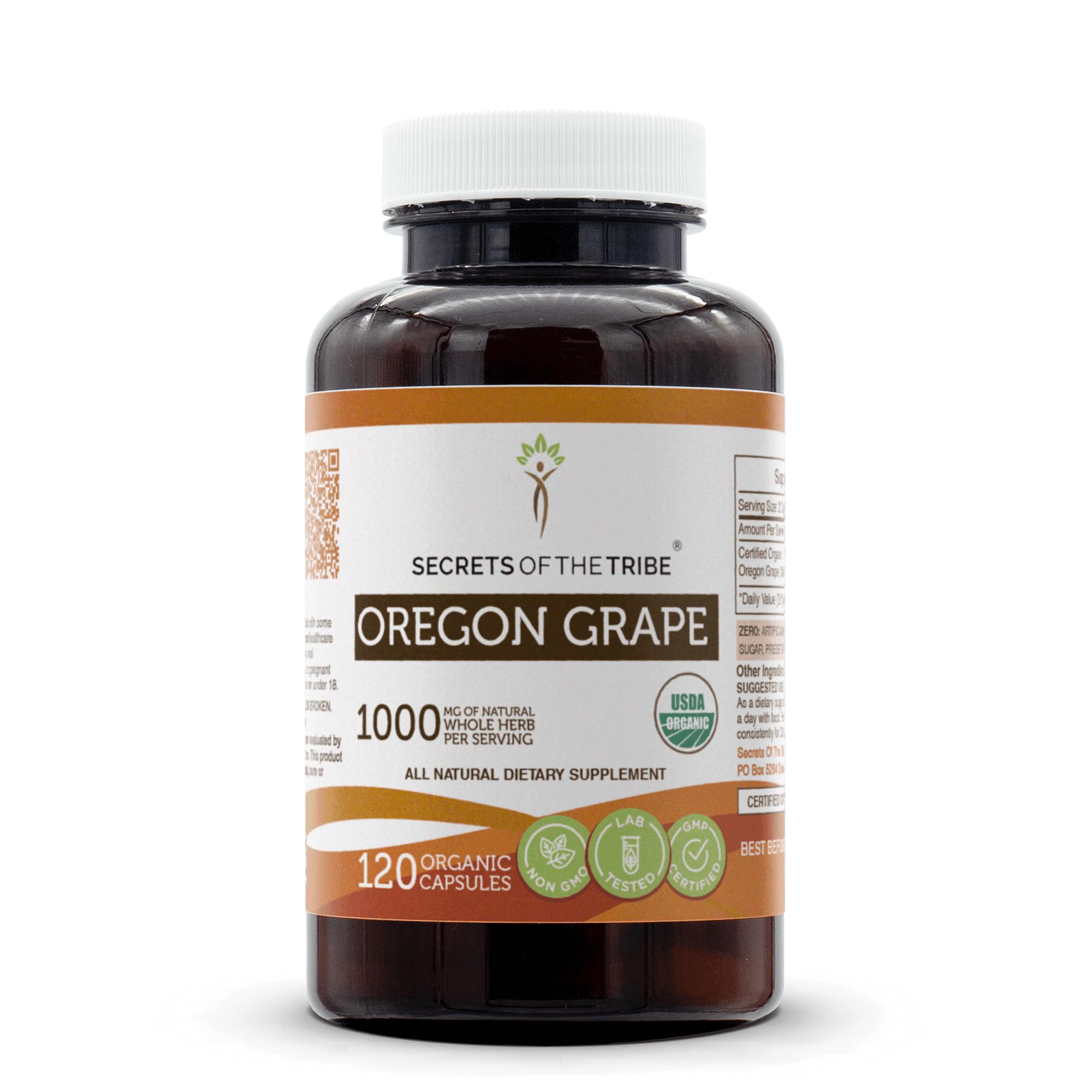 Secrets of the Tribe Oregon Grape USDA Organic Capsules | Certified Organic Vegetarian Capsules Herbal Dietary Supplement | Mahonia aquifolium Dried Root (120 Count) 120 Count (Pack of 1)