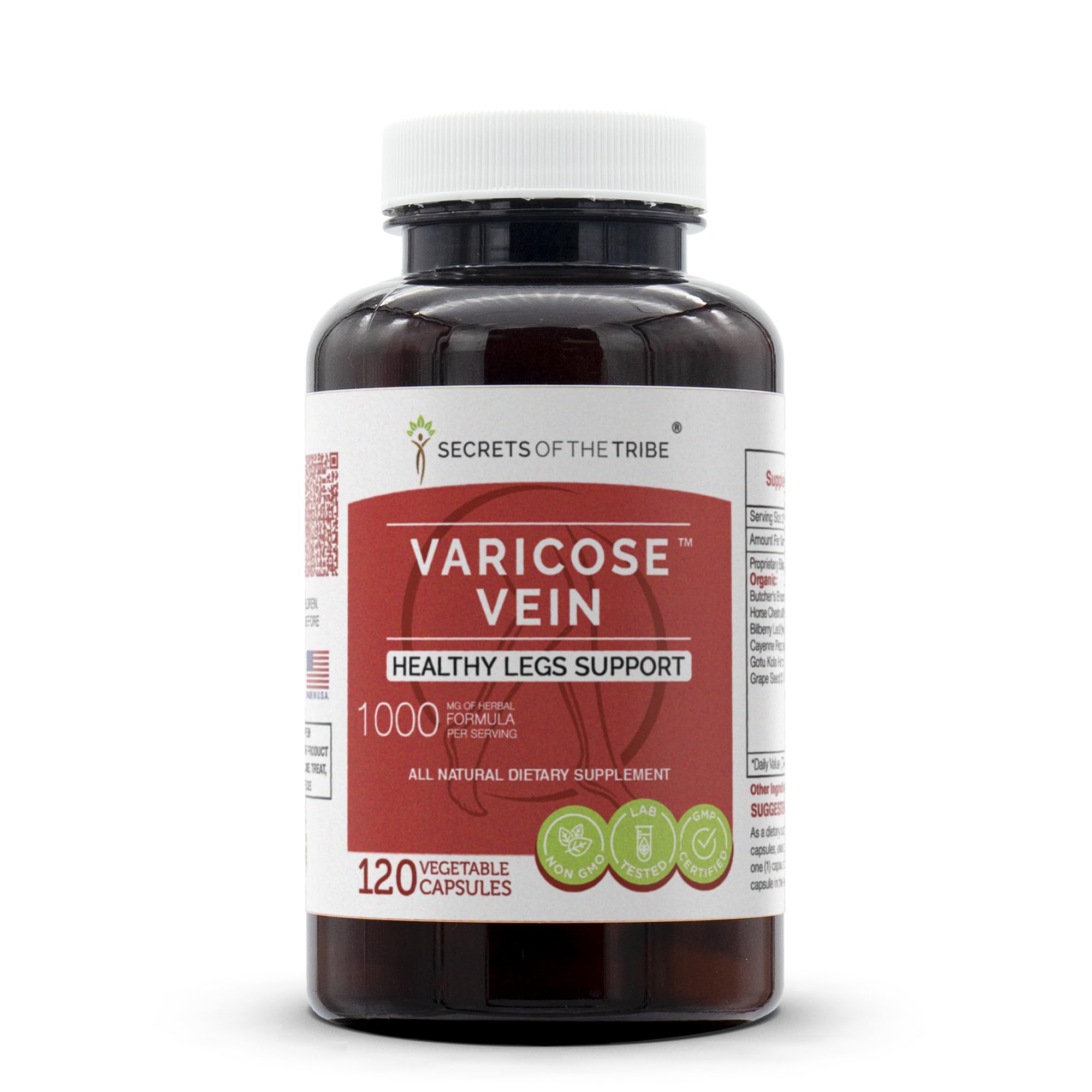 Secrets of the Tribe - Varicose Vein, Healthy Legs Support, Herbal Supplement Blend (120 Capsules) 120 Count (Pack of 1)