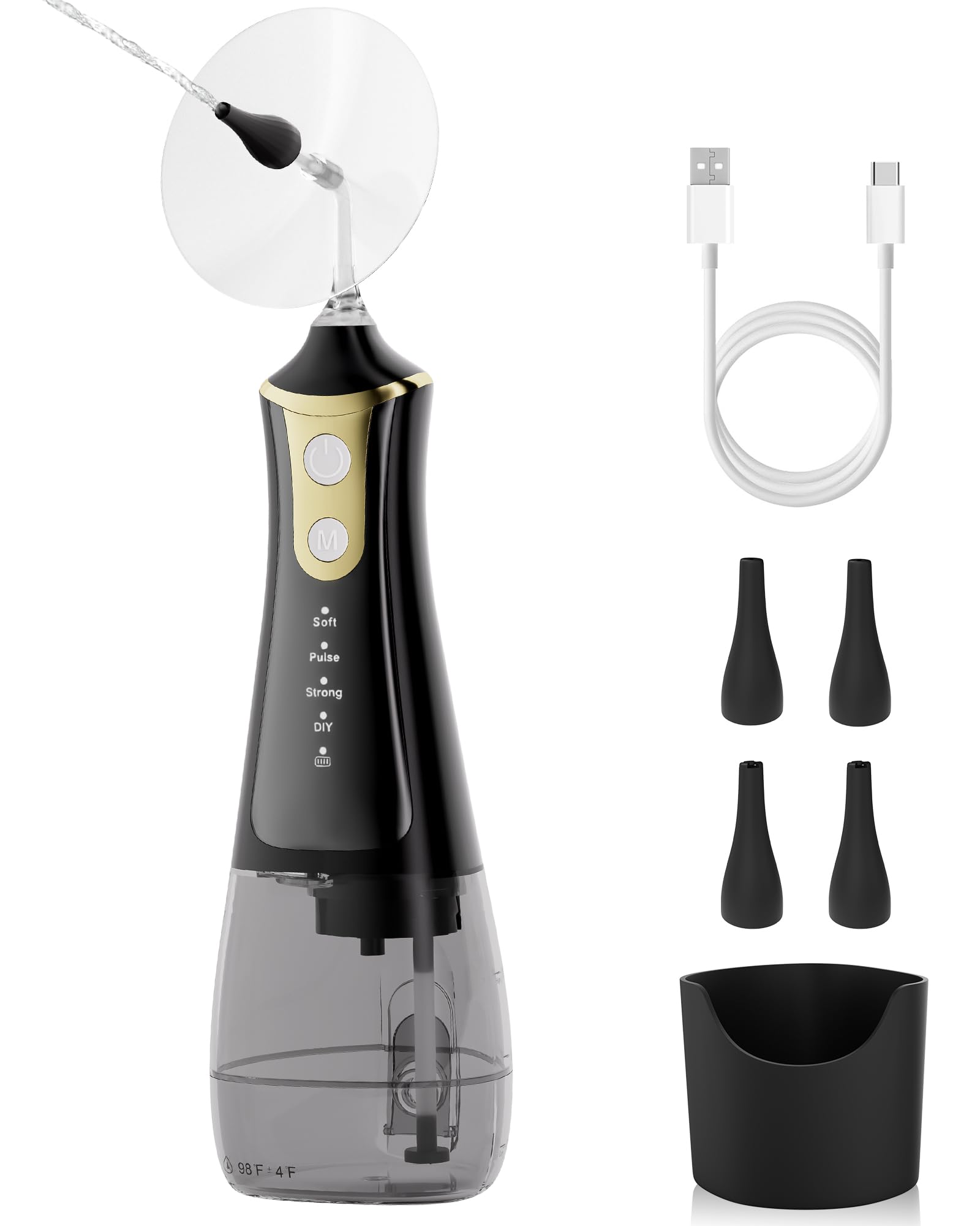 SEEDEAR Electric Ear Wax Removal Kit Ear Wax Cleaner with 4 Water Pressure Modes Ear Cleaning Kit Safer and More Effective Ear Irrigation Flushing System (Golden Black Medium(300ml))