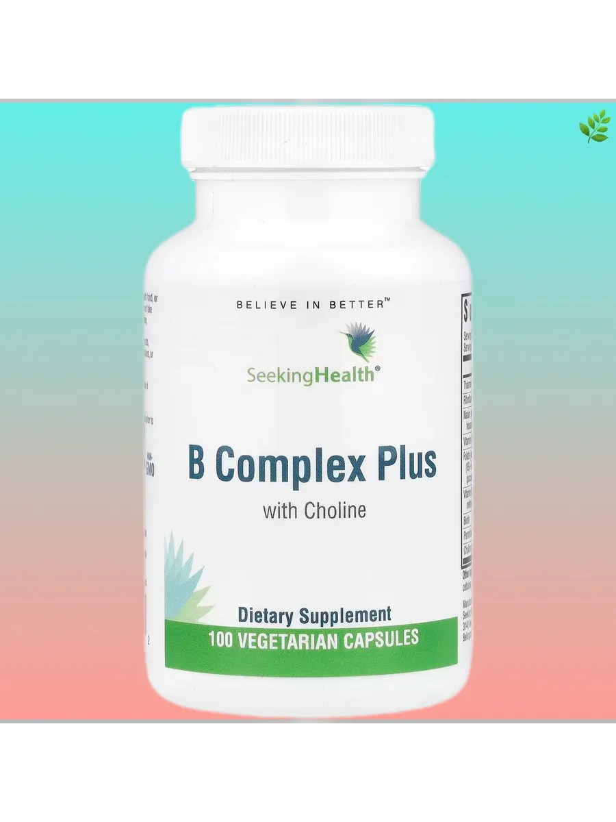 B Complex Plus от Seeking Health содержит восемь витаминов группы B с активными формами фолиевой кислоты, витамина B12, рибофлавина и B6. Этот комплекс также содержит холин, кофактор витаминов группы B, для оптимального усвоения. Активная форма фолата, L-5-метилтетрагидрофолат (L-5-MTHF), включена для поддержки немедленного метаболического ответа по сравнению с синтетической фолиевой кислотой, которая обычно встречается в других добавках. L-5-MTHF особенно полезен для поддержки требований нервной системы, поскольку это единственная форма фолиевой кислоты, которая проникает через гематоэнцефалический барьер. Коферментные формы витамина B12 (метилкобаламин и аденозилкобаламин), используемые в этом комплексе, могут легко усваиваться и использоваться организмом, поскольку эти формы активно участвуют в важных B12-зависимых ферментных реакциях.