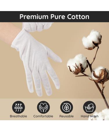 ✓ Width applicationIn addition to moisture care, these gloves have many other applications.You can wear them when dealing with delicate photo albums, glassware or during homework.✓ PracticabilityBy wearing this moisturizing gloves, moisture cream becomes more effective, which increases your moisturizing effect.In addition, wearing the gloves prevents your clothes or bed linen from getting dirty.✓ You get6 pairs of cotton gloves that are easy to put on and take off.These are unisex gloves that fit most adults.✓ Fine seamsOur white gloves are finely sewn, which means that they do not easily open or loosen them.Gloves of poor quality are deformed after a few uses, but our gloves retain their original form and effectiveness even after using multiple use.✓ Pure cottonOur cotton gloves are made of pure cotton and offer your hands a soft and breathable moisture experience.This natural material is gentle on the skin and is ideal for long -term use.