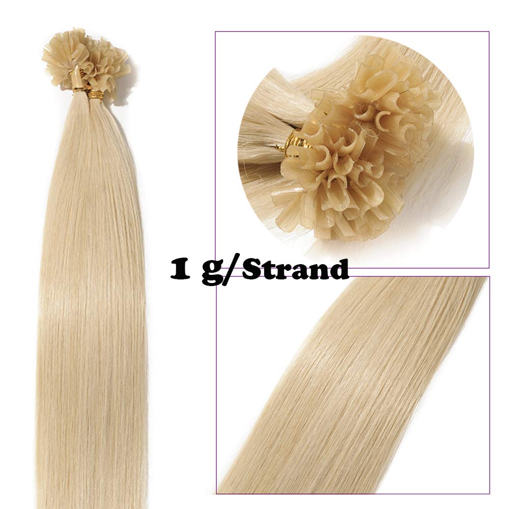 SEGO 50cm Extensions Echthaar Bondings Keratin U-Tip Remy Human Hair Haarverlängerung 50 Strähnen Platinumblond 60 20"-50g