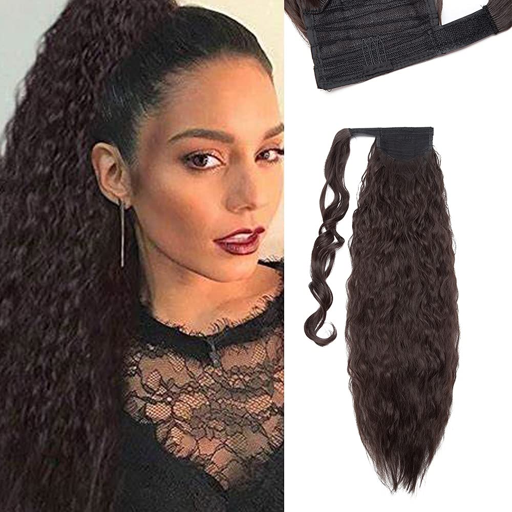 SEGO 66cm Ponytail Extension Haarteil Zopf Lang Corn Wavy Pferdeschwanz Haarverlängerung Lockig Synthetik Haare 4A Dunkelbraun