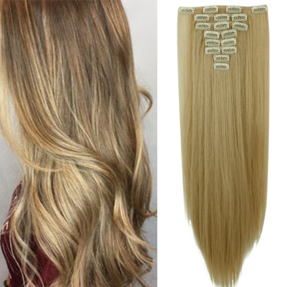 SEGO Clip in Extensions Haarverlängerung Haarteil 8 Tresssen wie Echthaar glatt Dark Blonde Mix Bleichblond 23"(58cm)-140g 58 cm Dark Blonde Mix Bleichblond