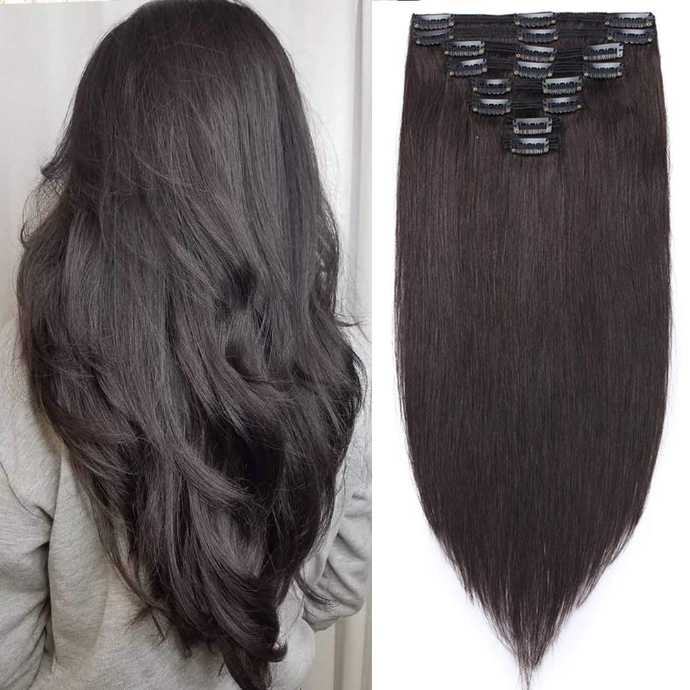 Clip in Extensions Real Hair Extension Hairpiece 8 piece SET Remy Hair Medium Brown#4 25 cm (75 g)