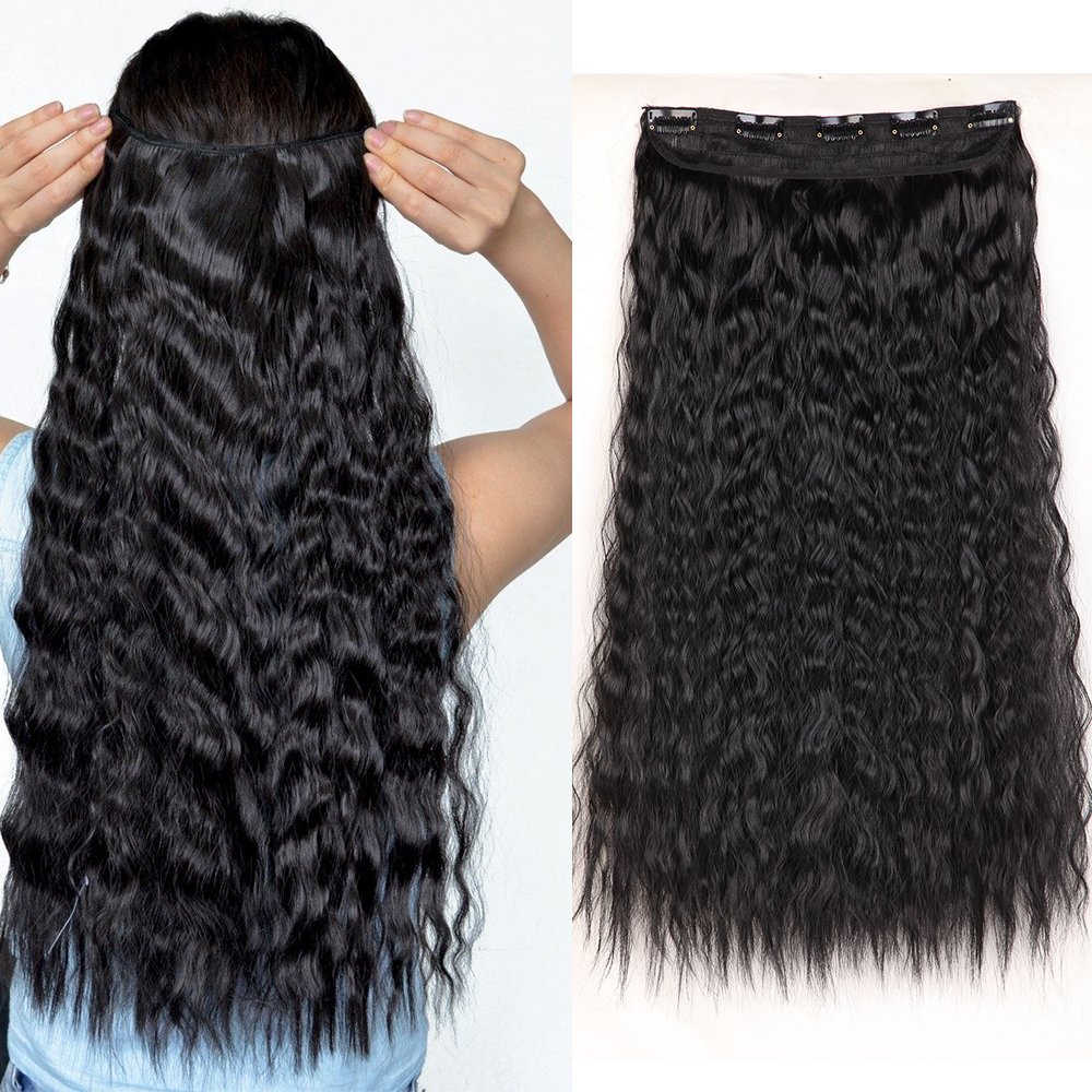 SEGO Haarverlängerung Clip in Extensions 1 Tresse 5 Clips Haarteil Corn Wavy Haarverdichtung Synthetische Haare wie Echthaar Gewellt Schwarz 10 inch/25.5 cm-120 g