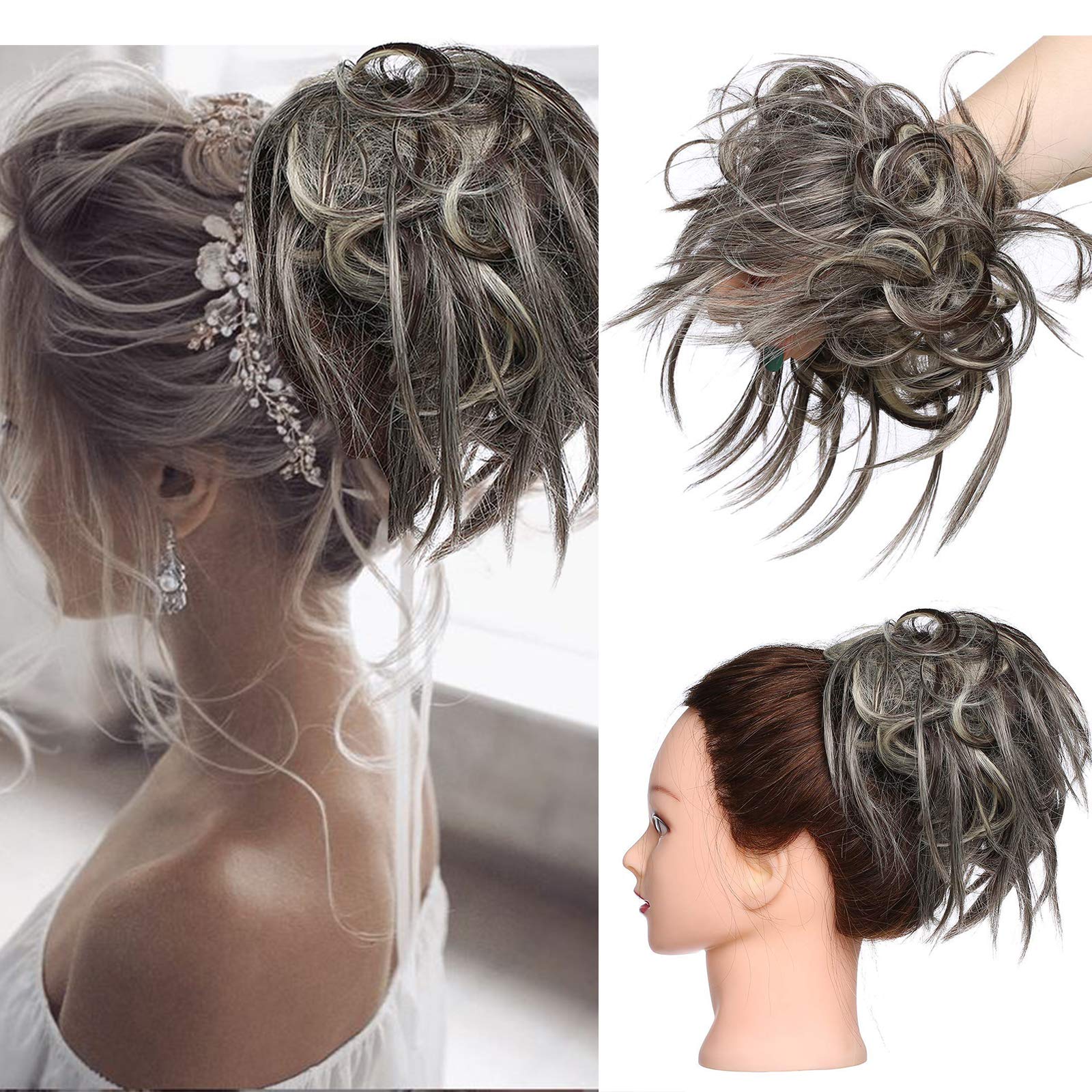 Tess hair part dutt blond mix hair tie with hair wavy thick hair knot updos.