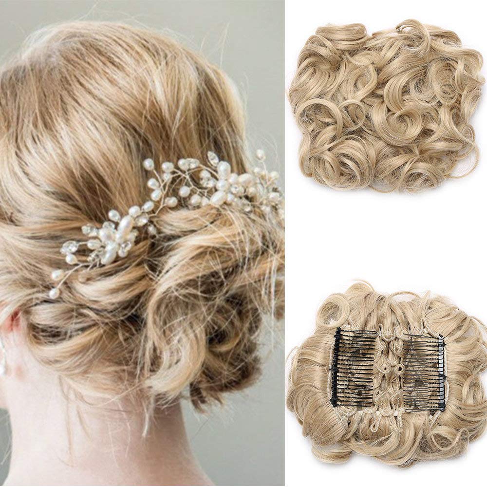 Tess hair part dutt blond mix hair tie with hair wavy thick hair knot updos.