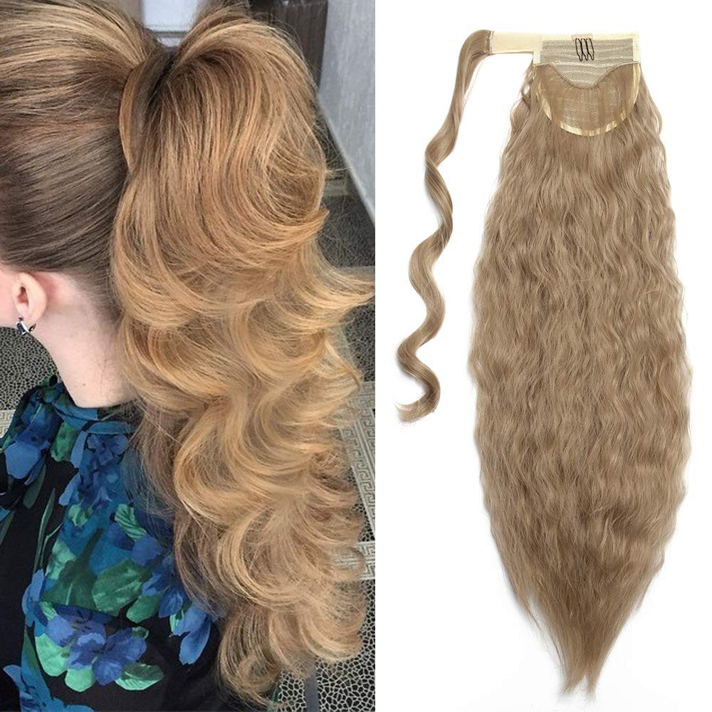 SEGO Ponytail Clip in Pferdeschwanz Zopf Extension Haarteil Haarverlängerung Hair Piece Corn Wavy gewellt Sandy Blonde-1 50 cm