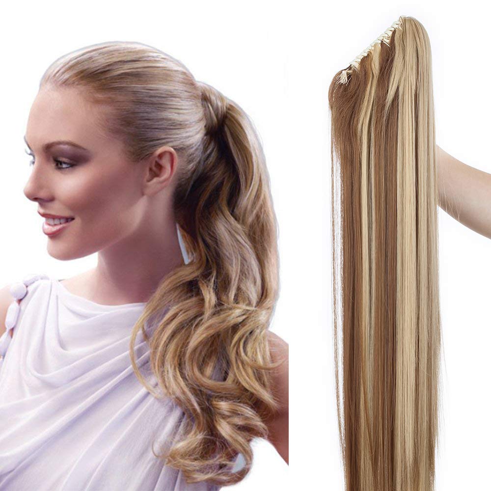 SEGO Ponytail Extension Pferdeschwanz Haarteil Haarverlängerung Zopf mit Butterfly-Klammer Hair Piece Haar Glatt Hitzebeständig wie Echthaar Hellbraun & Aschblond Glatt-26"(66cm)-150g