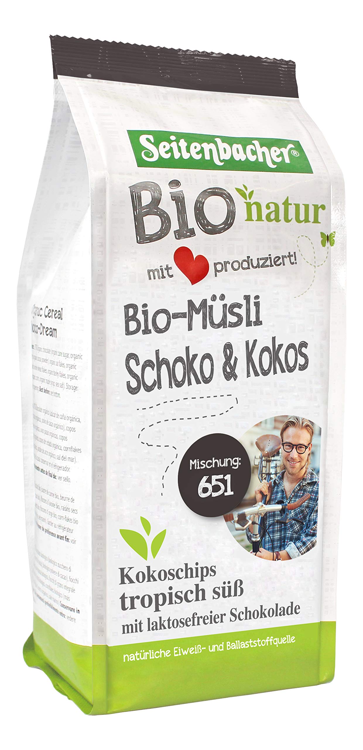A chocolate temptation with coconut. Our brand new organic muesli mix is completely wheat-free and impresses with tropically sweet coconut scoop and lactose-free chocolate. INGREDIENTS Organic whole grain oat flakes, organic chocolate (organic icing sugar, organic cocoa butter, organic cocoa powder, highly de-oiled), organic barley flakes, organic soy flakes (organic corn grits, organic soy, organic maple syrup, sea salt), organic dried coconut flakes, organic linseed, organic sunflower seeds. Certified by: eco-control body DE-ÖKO-006 EU non-EU agriculture INSTRUCTIONS FOR USE Place 50 g in a bowl and enjoy with any type of milk or juice. SAFETY WARNING Do not store in direct sunlight. See moreSeitenbacher Biologische volkoren muesli chocolade en kokos, verpakking van 3 (3 x 454 g) Een chocolade verleiding met kokos. Onze gloednieuwe biologische mueslimix is volledig tarwevrij en maakt indruk met tropisch zoete kokosschep en lactosevrije chocolade. INGREDIËNTEN Biologische havervolkorrel vlokken, biologische chocolade (biologische poedersuiker, biologische cacaoboter, biologisch cacaopoeder sterk ontolied), biologische gerst revlokken, biologische sojaflakken (biologische maïsgries, biologische soja, biologische esdoornsiroop, zeezout), biologische kokosjips gedroogd, biologische lijnzaad, biologische zonnebloempitten. Gecertificeerd door: eco-controle-instantie DE-ÖKO-006 EU- niet-EU-landbouw GEBRUIKSAANWIJZING 50 g in een kom doen en met alle soorten melk of sap genieten. VEILIGHEIDSWAARSCHUWING Niet in direct zonlicht bewaren. Meer bekijken