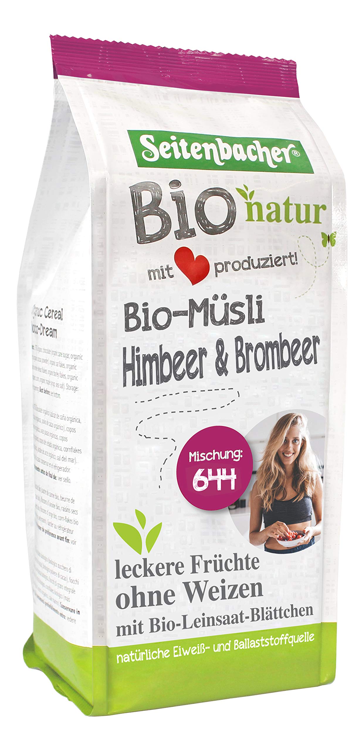 Seitenbacher Organic whole grain muesli raspberry and blackberry pack of 3 3 x 454 g