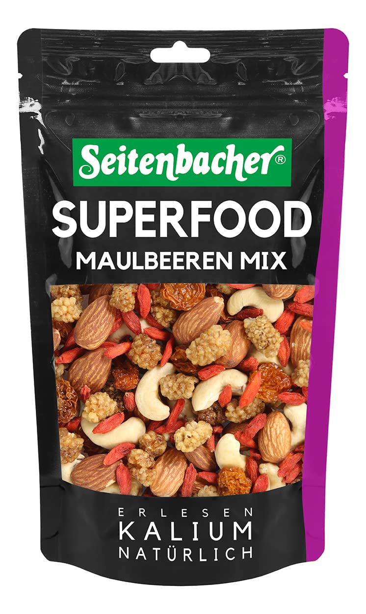 A super mix of fruits and nuts is ideal as a topping for yoghurt, bowls and muesli. Nutritional value per 100 g energy 2058 kJ 436 kcal fat 22 g - of which saturated fatty acids 3 g carbohydrates 38 g - of which sugar 30 g fibers 11 g protein 16 g salt 0.2 g potassium 810 mg (40 ) magnesium 120 mg (32 ) magnesium (32 ) percent of the reference. Amount for the daily diet INGREDIENTS almond kernels, cashew kernels, mulberries, physalis, goji berries, pineapple cubes.Seitenbacher Super Food Topping 200g Een supermix van vruchten en noten is ideaal als topping voor yoghurt, bowls en muesli. Voedingswaarde per 100 g energie 2058 kJ 436 kcal vet 22 g - waarvan verzadigde vetzuren 3 g koolhydraten 38 g - waarvan suiker 30 g ballaststoffen 11 g eiwit 16 g zout 0,2 g kalium 810 mg (40 ) magnesium 120 mg (32 ) magnesium (32 ) procent van de referentie. Hoeveelheid voor de dagelijkse voeding INGREDIËNTEN amandelkernen, cashewpitten, moerbeien, fysalis, gojibessen, ananasdobbelstenen.