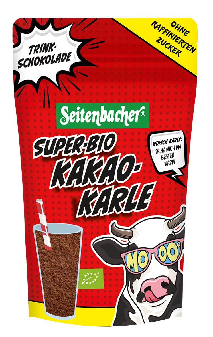 Cocoa-containing drink powder without refined sugar. Experience the intense cocoa flavor of the super-organic cocoa Karle from Seitenbacher. This cocoa-containing drink powder without refined sugar offers a delicious chocolate pleasure with subtle sweetness. The mix of dark cocoa and panel sugar is not only suitable for a tasty drink, but also perfect for chocolate cake or as a spice in chili con carne. If you want to give your favorite muesli a nice cocoa note, you can add some super organic cacao karle as a topping. Of course without additives. Preparation: add 2-3 heaped teaspoons to 200 ml of warm milk and stir briefly. INGREDIENTS Organic panel sugar, organic cocoa powderSuper-biologische cacao-karle, drinkchocolade, veganistisch, 100 biologisch, zonder geraffineerde suiker, 1 x 300 g (1) Cacaohoudend drankpoeder zonder geraffineerde suiker. Ervaar de intense cacaosmaak van de super-biologische cacao Karle van Seitenbacher. Dit cacaohoudende drankpoeder zonder geraffineerde suiker biedt een heerlijk chocoladegenot met subtiele zoetheid. De mix van donkere cacao en panelsuiker is niet alleen geschikt voor een lekkere drankcao, maar ook perfect voor chocoladecake of als specerij in chili con carne. Wil je je favoriete muesli een fijne cacaonot geven, kun je er wat superbiologische cacao karle over geven als topping. Natuurlijk zonder additieven. Bereiding: voeg 2-3 opgehoopte theelepels toe aan 200 ml warme melk en roer even door. INGREDIËNTEN Biologische paneelsuiker, biologische cacaopoeder