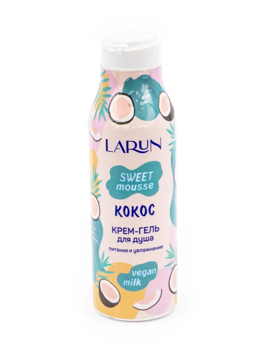 Larun / Ларун Крем-гель для душа женский Sweet mousse Кокос питание и увлажнение с экстрактом кокоса 400мл / очищающее средство для тела. Натуральный крем-гель для душа увлажняющий и питательный Larun .