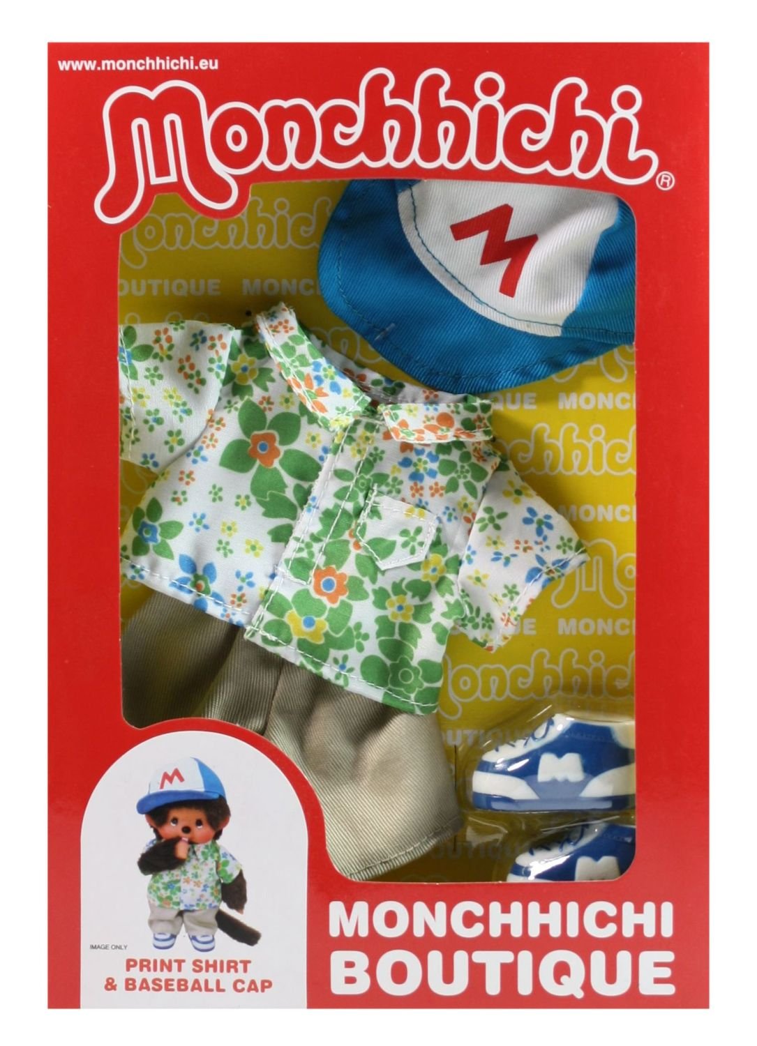 Monchhichi Boutique - Now there is also the right change clothes for the original Monchhichis for every suitable opportunity.With this 4 -part clothing set, your Monchhichi (20 cm) is perfectly attracted to summer.The set contains a pair of shoes, pants, a Hawaii shirt and a cappy.
