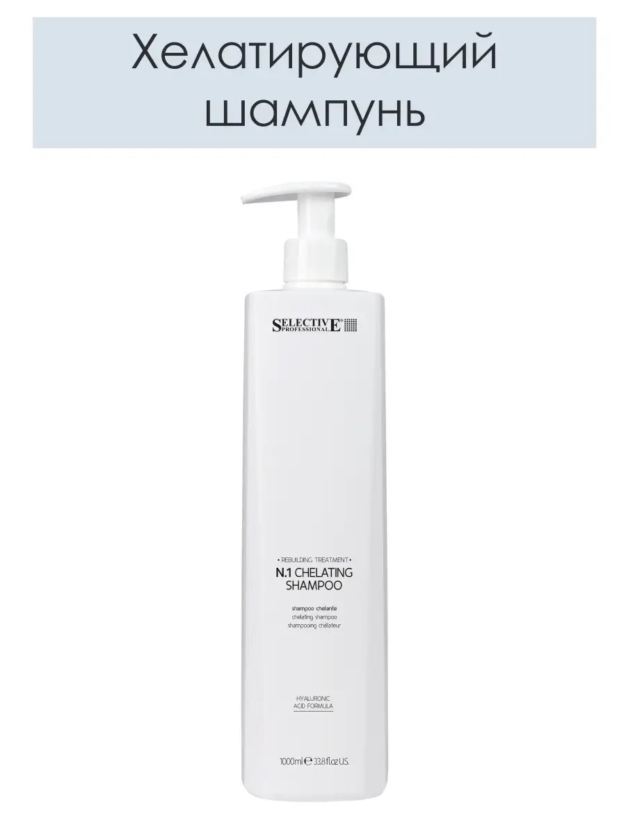 Chelating shampoo for hair, 1000 ml, REBUILDING TREATMENT N.1 CHELATING SHAMPOO - enriched with hyaluronic acid. This deep-cleansing shampoo has a deep cleansing effect, removing impurities from the hair shafts and preparing them for the application of the Reconstructing Mask N.2 RE-BUILD TREATMENT. Bottle: 1 liter. Selective Professional is a famous brand of professional hair cosmetics from Italy. It contains a full range of hair care products. Professional Italian hair care cosmetics Selective offer a wide range of functions, providing a cleansing, moisturizing and strengthening, restoring and smoothing effect, nourishing and volumizing. The Selictive Professional range is widely represented by products for hairdressers and beauty salons, coloring and cutting, making Selective very popular among professionals and stylists. Our professional brand offers a wide selection of products for shine, radiance, restoration and protection, nutrition and hydration, cleansing, and strengthening weakened split ends. Seliktive Professional Rebuilding Treatment is unisex for both men and women. It is suitable for all hair types: fine, dyed, light-colored, blonde, gray, dull, brittle, porous, dry, and dyed hair. Rebuilding treatment is suitable for blonde, bleached, and aged hair, curly, damaged, and oily hair. This care for curls, cuticles, and scalp, for both women and men, helps restore vitality, elasticity, and strengthen hair. Original - comes with an original certificate of authenticity. You can always contact our professional technologists through the "Questions" section of the product card for advice on product use and assistance in choosing a cosmetic product.