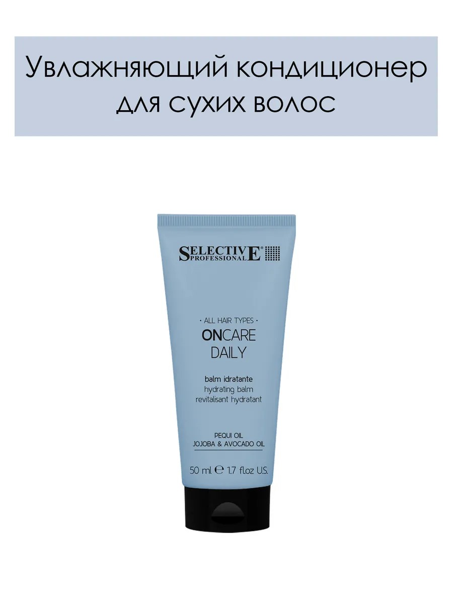 ONCARE DAILY Hydrating Conditioner for Dry Hair 50ml (pH 3.0-4.5) deeply moisturizes and conditions, adding softness, shine, and vitality. Apply as a balm or mask. DAILY products optimize hydration and cell renewal, suitable for all hair types, are designed for daily hydration. The moisturizing formula works intensively after the first use, and the gentle and disciplining action improves the texture of curls, making them stronger, very light, soft, and giving them a shimmering shine and silky effect. Carefully selected ingredients ensure gradual action. Ingredients in the line: 1. Avocado oil - a natural oil rich in nutrients and carotenoids. Rapid penetrating ability makes it extremely nourishing and able to moisturize the scalp and hair shafts when they are especially dry. Increases hydration and growth. 2. Pequi oil has a high concentration of provitamin A and is rich in natural oleic and palmitic fatty acids. It adds elasticity and shine, reducing frizz. This light oil, rich in antioxidants, prevents the appearance of signs of premature aging. 3. Jojoba oil is renowned for its nourishing and protective properties. Its special molecular structure, similar to sebum naturally secreted by the skin's sebaceous glands, provides excellent nutrition, hydration, and softness. ONCARE is a complete line of hair care products for all hair types, capable of helping hairdressers solve any professional hairdressing problem. Original - comes with an original certificate of conformity. You can always contact our professional technologists through the "Questions" section in the product card for advice on product use and assistance in choosing a cosmetic product.