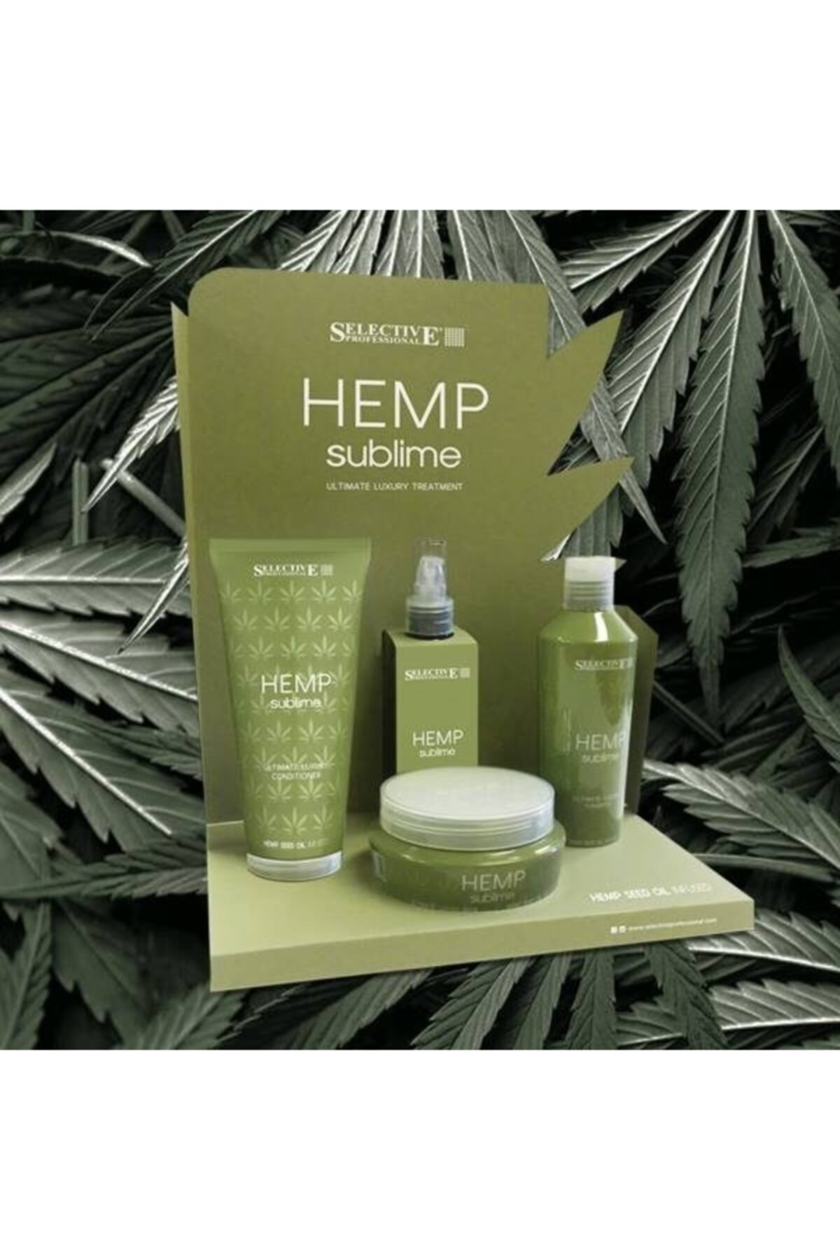 4-Piece Advantage SETSelective Hemp Sublime Ultimate Luxury Shampoo 250 mlSelective Hemp Sublime Ultimate Luxury Conditioner 200 mlSelective Hemp Sublime Ultimate Luxury Mask 250 mlSelective Hemp Sublime Ultimate Luxury Elixir 100 mlHEMP SEED OIL
