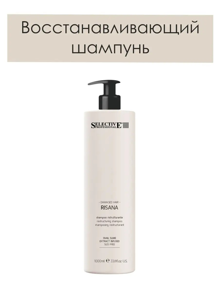 Восстанавливающий шампунь с экстрактом муцина улитки БЕЗ SLES 1000мл, RISANA Restructuring Shampoo Snail Slime extract infused – это деликатный восстанавливающий шампунь с экстрактом муцина улитки, специально предназначенный для поврежденных и ослабленных волос. Обволакивает их, придавая ощущение приятной расслабленности. Обладая большой гигроскопичностью, защищает от действия свободных радикалов и механических повреждений. Обогащен муцином улитки, глубоко питает и укрепляет волосяные волокна. Дополнительный ингредиент: Протеины пшеницы -обладают восстанавливающим и реструктурирующим действием. Применение: Равномерно распределите средство, начиная от корней. Мягкими массирующими движениями взбейте пену, после чего тщательно смойте. Наносите его дважды. Сначала - для глубокого очищения волос и кожи головы, а затем - для усиления эффекта ухода, укрепления и восстановления. Рекомендуется использовать совместно с Восстанавливающим спреем мгновенного действия с экстрактом муцина улитки и Двухкомпонентной восстанавливающей маской мгновенного действия из линейки RISANA. Бутылка литр 1л . Selective Professional - знаменитый бренд профессиональной косметики для волос из Италии. Ассортимент Selictive Profesional широко представлен продукцией для парикмахера и салона красоты, окрашивания и стрижки, благодаря чему Selectiv пользуется большой популярностью среди мастеров и стилистов. В нашем professional бренде вы найдете широкий выбор продуктов для блеска, сияния, восстановления и защиты, питания и увлажнения, очищения, укрепления ослабленных секущихся кончиков. Оригинал - имеется оригинальный сертификат декларация. Вы всегда можете обратиться к нашим профессиональным технологам через раздел "Вопросы" в карточке товара для получения консультации по применению продукции и помощи в подборе косметического средства.